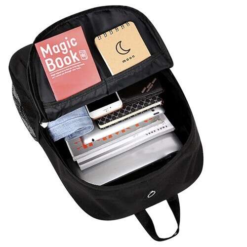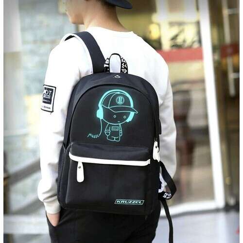 Okostáska/hátizsák, foszforeszkáló, vízálló, USB kábel, mini jack, zár, fekete, 33x14x42 cm, Kruzzel