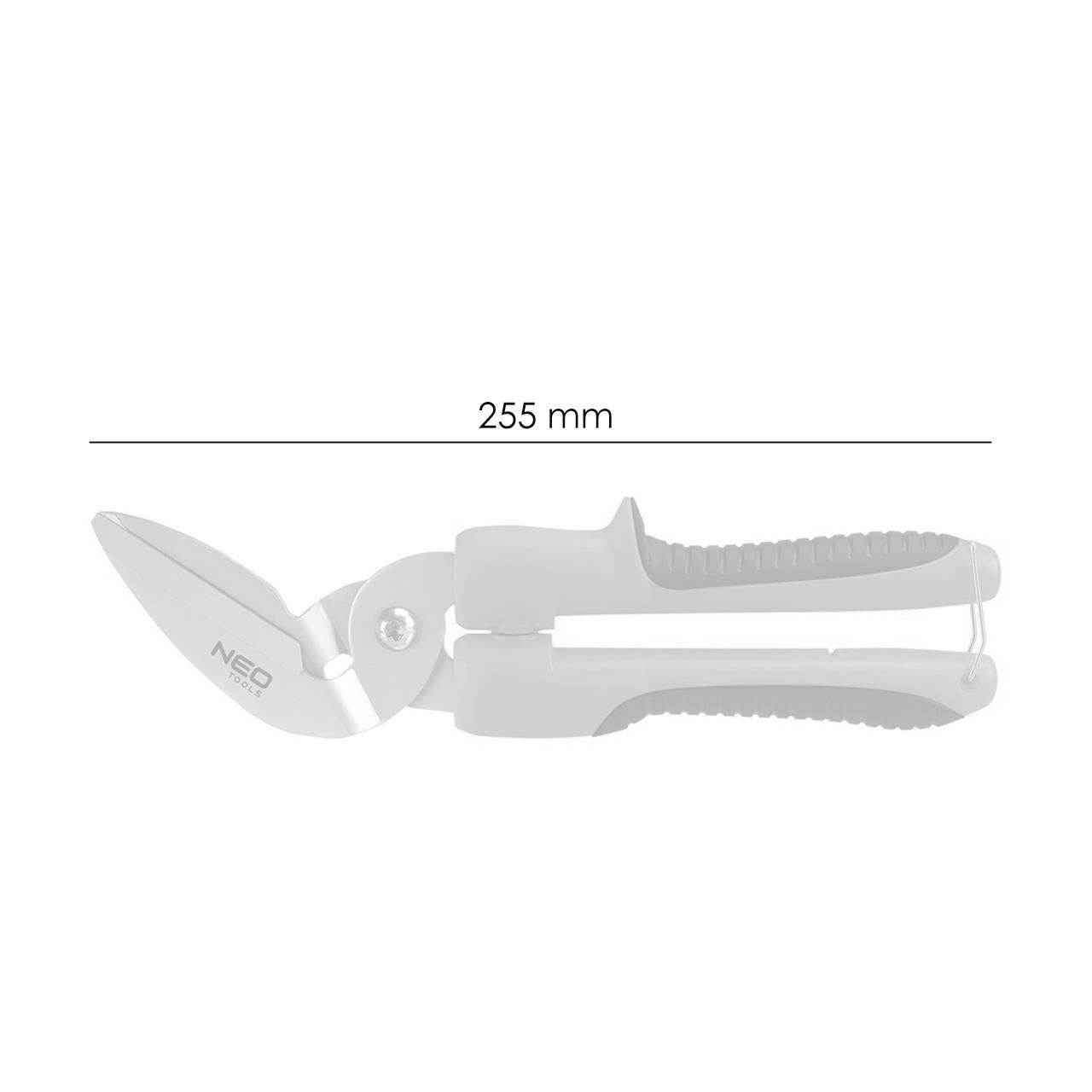 Szőnyegvágó olló, NEO szőnyeg hossza 255 mm, penge vastagsága 3,5 mm. A pofák kiváló minőségű J2 rozsdamentes acélból készülnek, ami hosszú élettartamot garantál. A fogazott penge megakadályozza a vágott anyag elcsúszását. Az olló kialakítása szokatlan, például ívelt vágásokat tesz lehetővé. A csúszásmentes anyaggal borított, ergonomikus műanyag fogantyú biztonságot és kényelmet biztosít munka közben. A NEO márka megfelel a szakemberek elvárásainak.