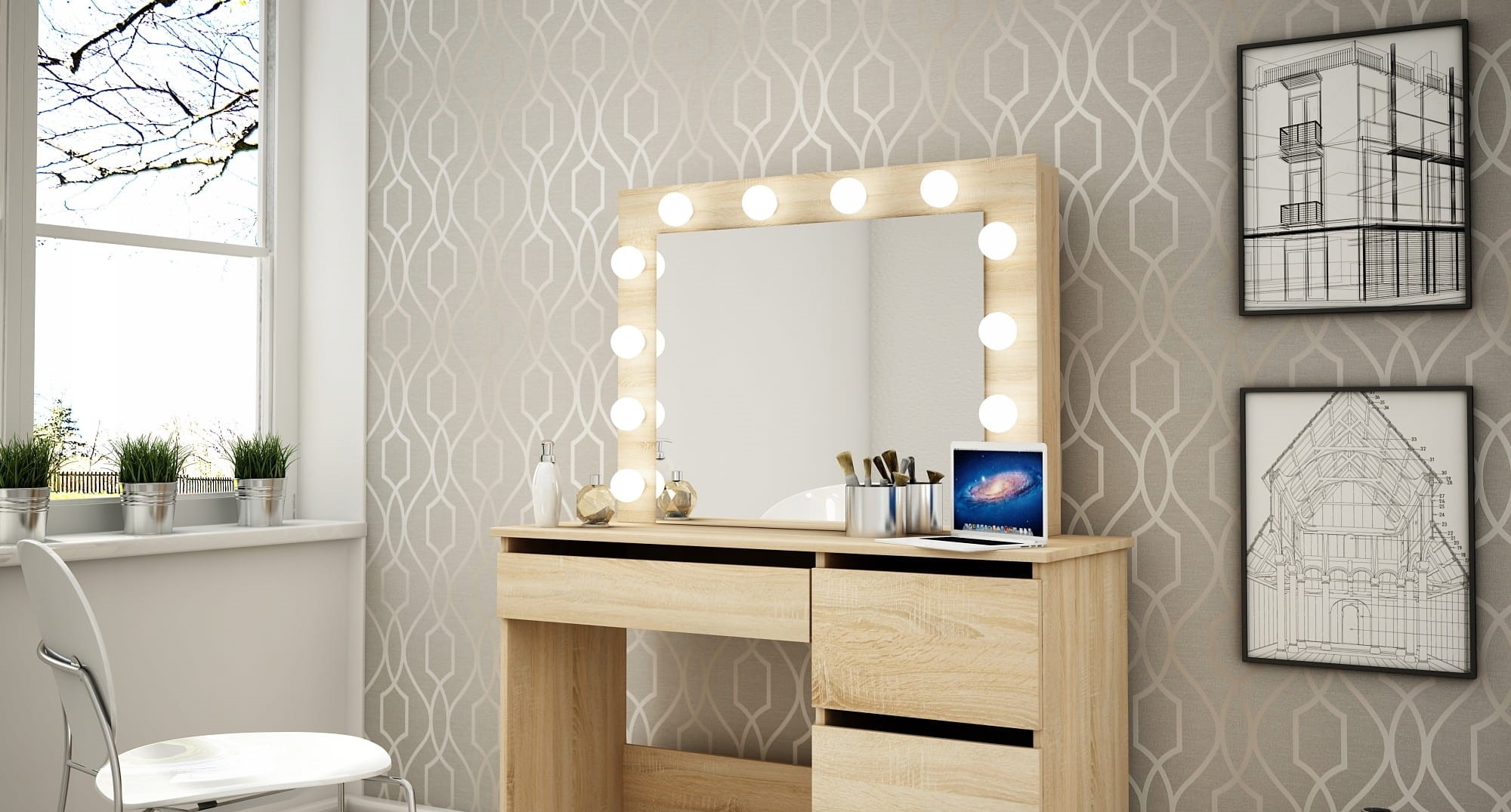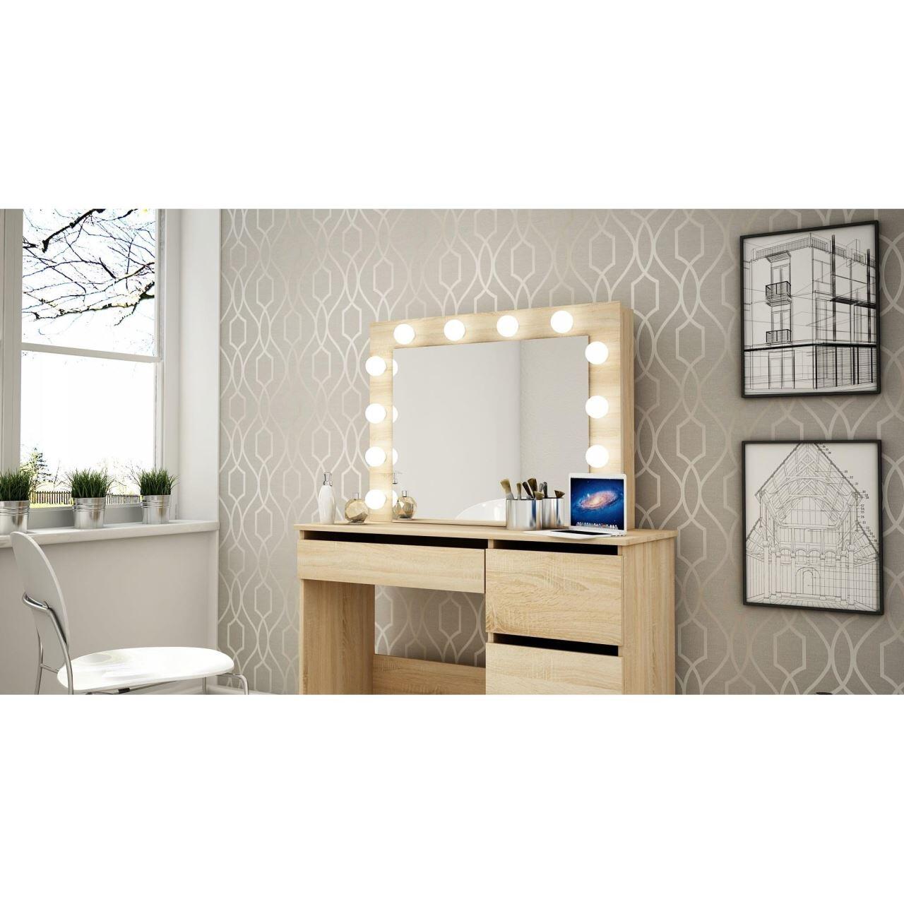 A sminkes fésülködőasztal tükörrel és 12 LED-del egyértelműen minden nő álma.