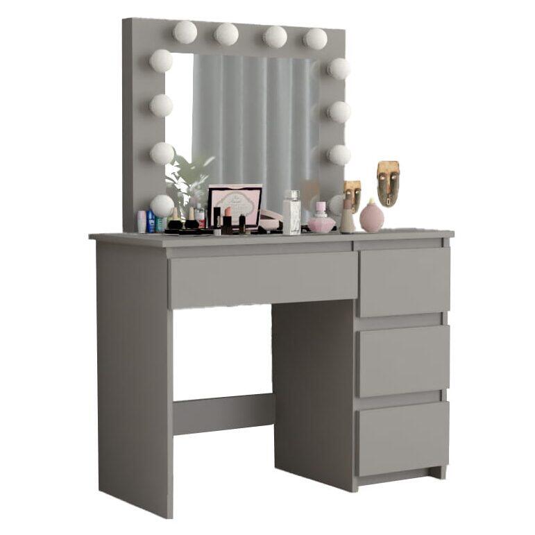 • Az E14 LED izzókkal ellátott dedikált világítás is egyediséget biztosít, és biztosítja a fésülködőasztal használatának kényelmét. Világos lesz, a színe semleges. Biztosíthatjuk, hogy ez a legjobb fésülködőasztal modell kínálatunkban.