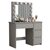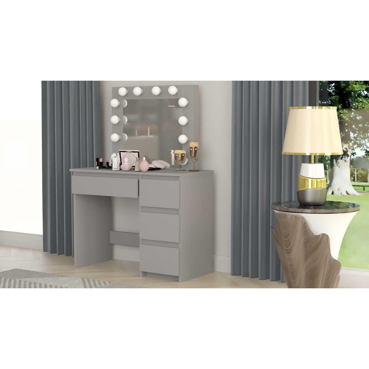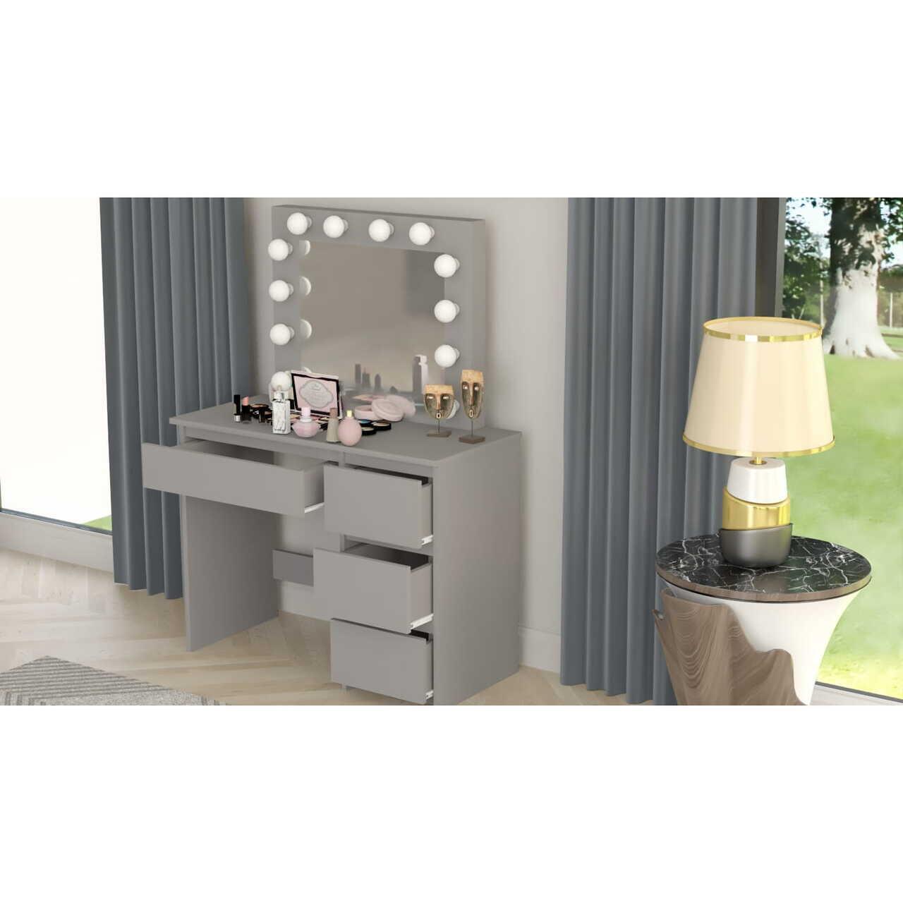 Öltöző/sminkasztal + skandináv stílusú szék, szürke, tükörrel és LED-ekkel, 94x43x141 cm
