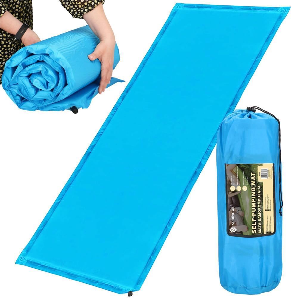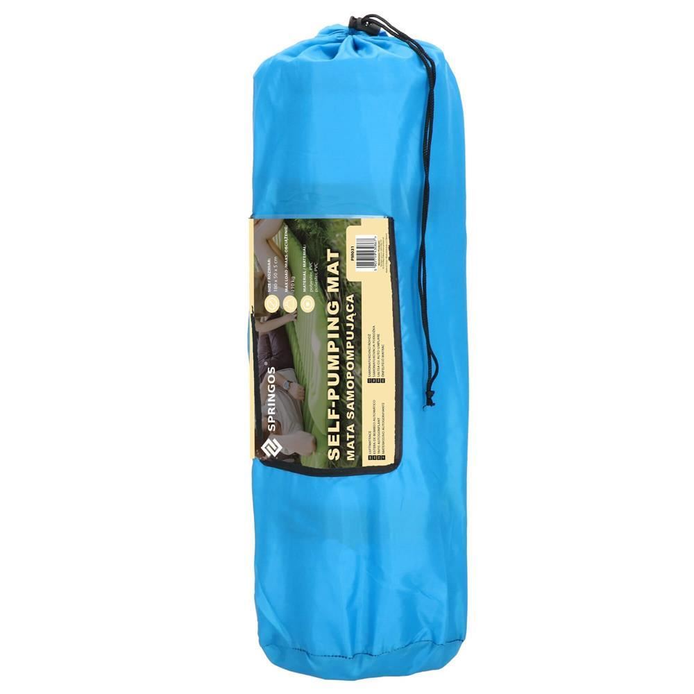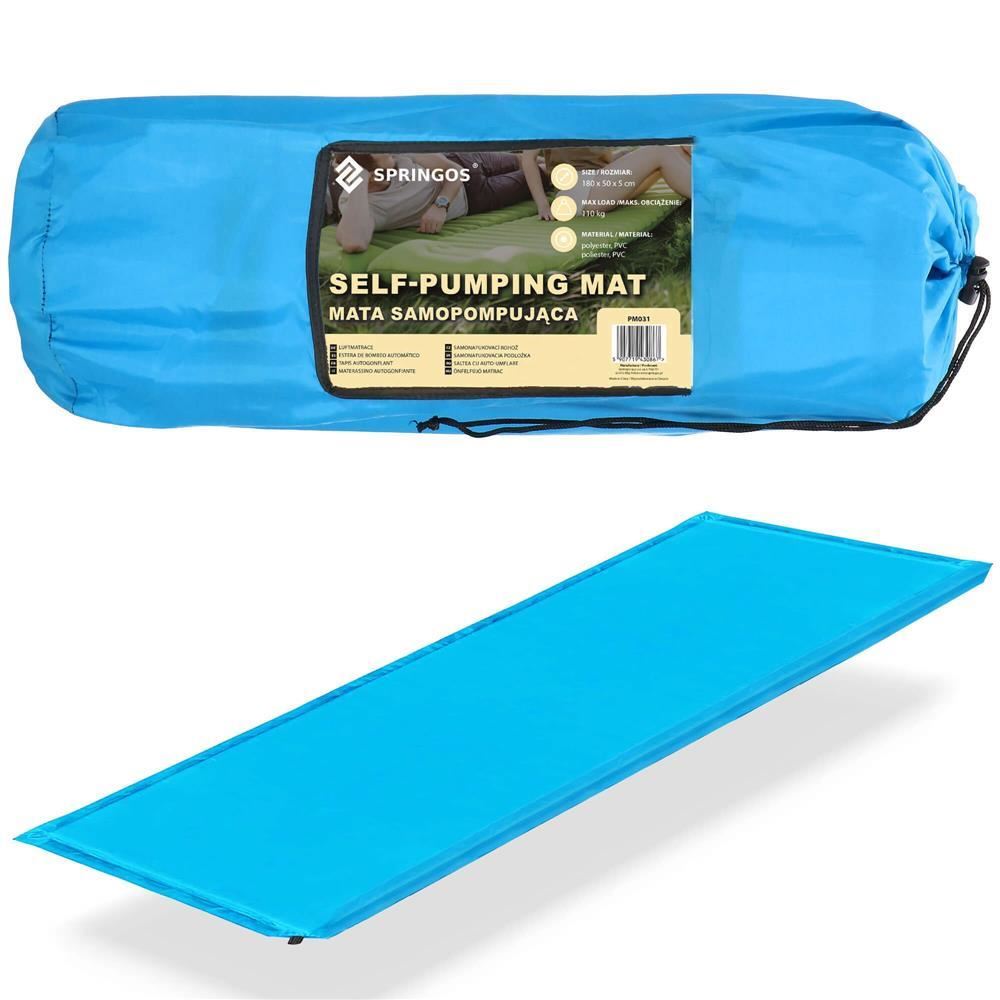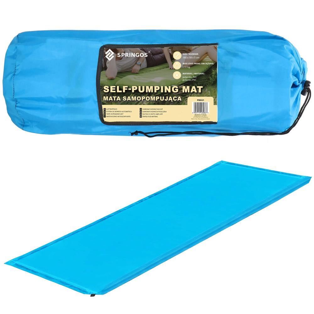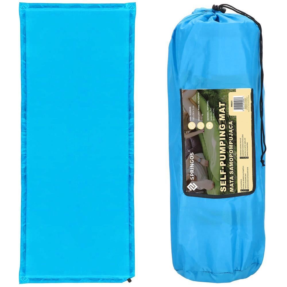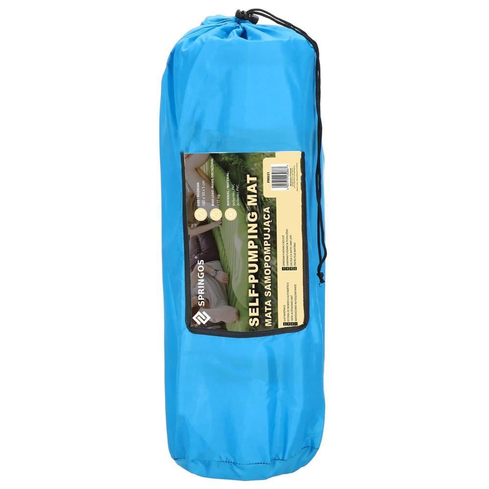 Önfelfújó kempingmatrac, poliészter és PU hab, kék, 180x50 cm, Springos