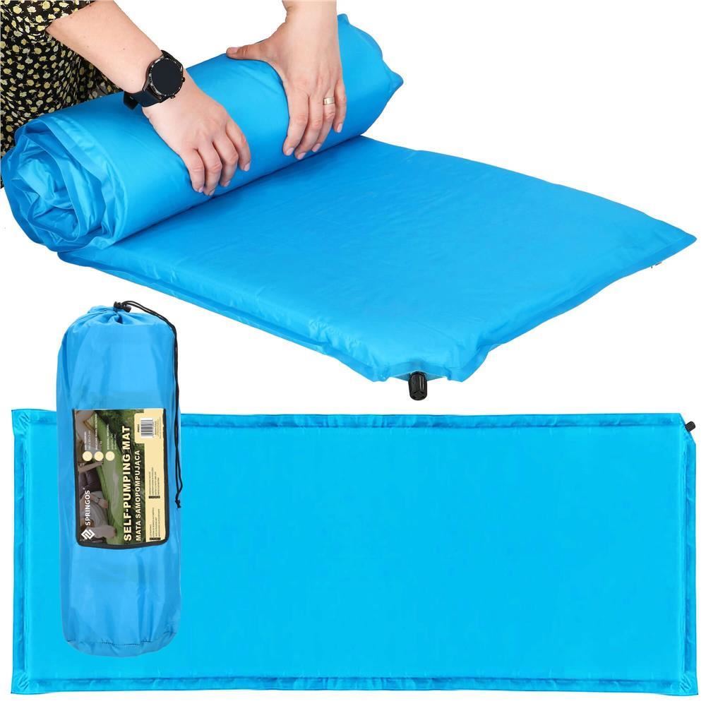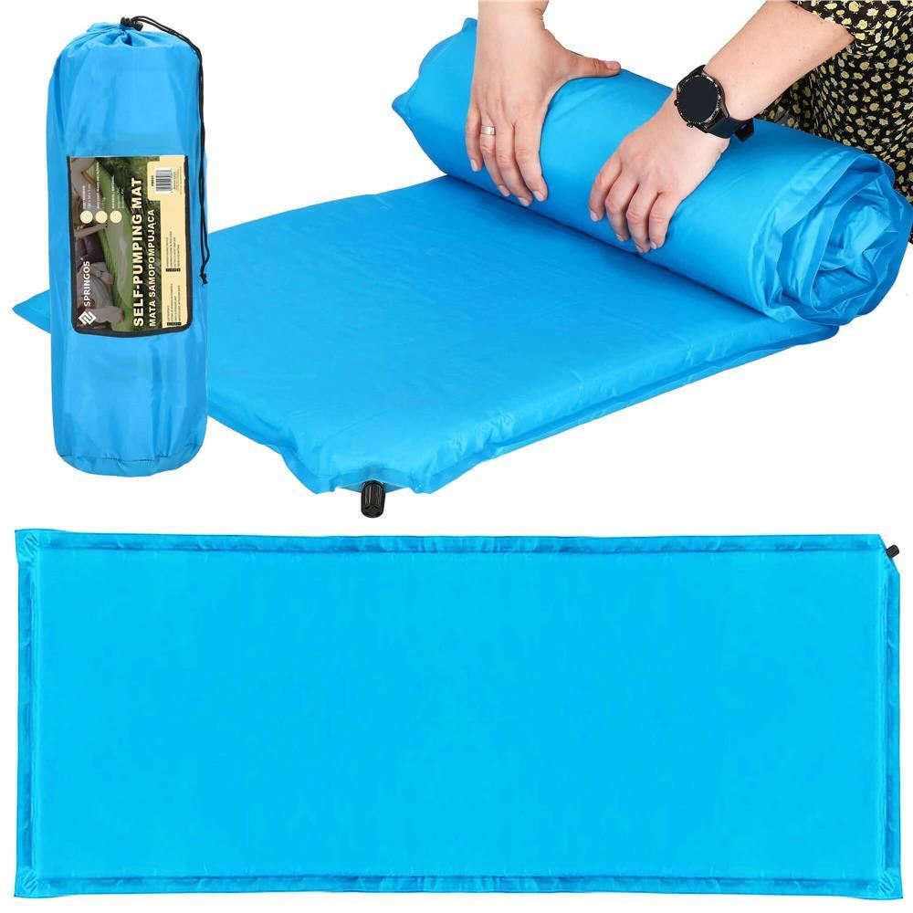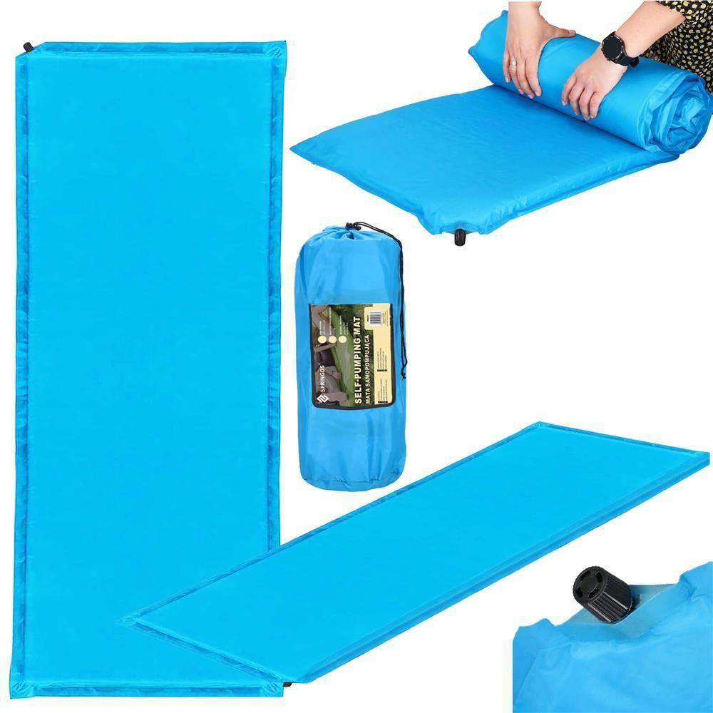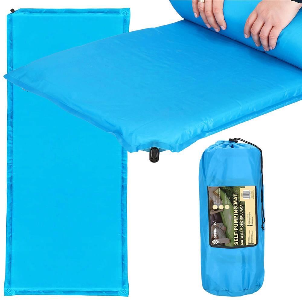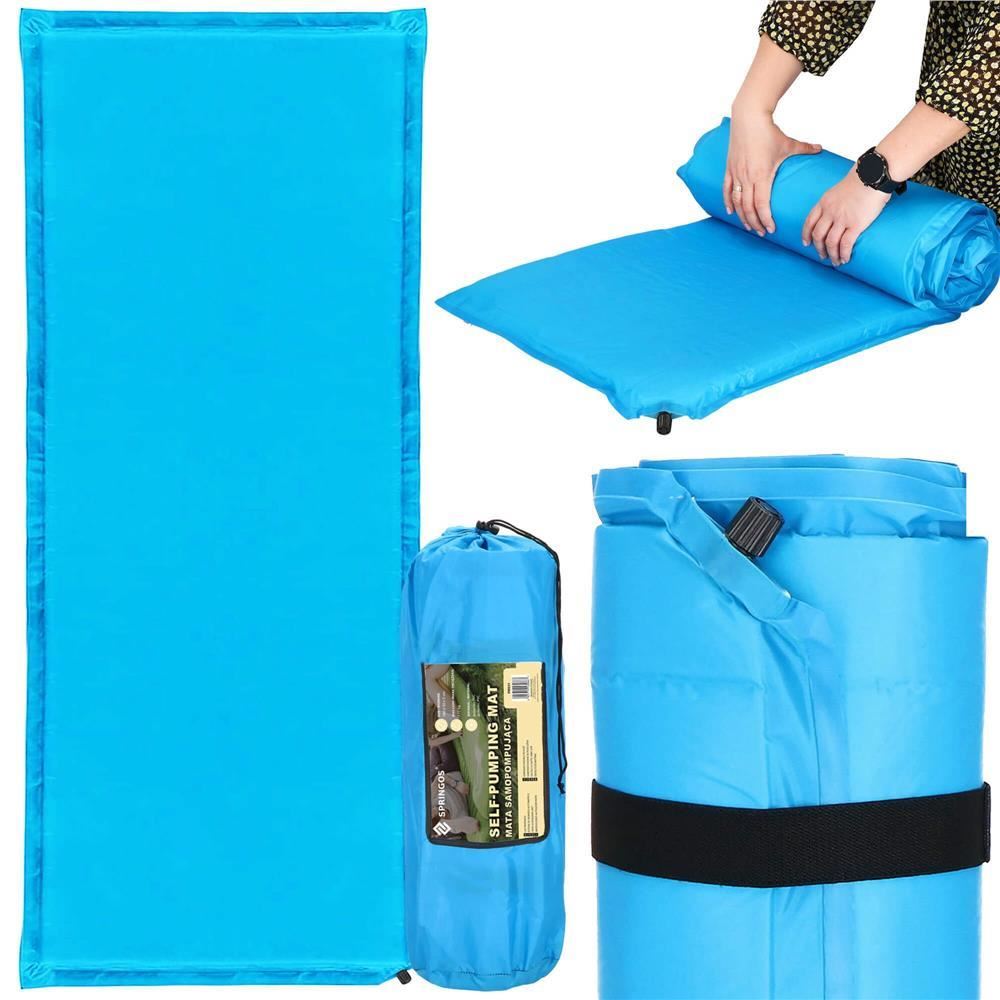 Önfelfújó kempingmatrac, poliészter és PU hab, kék, 180x50 cm, Springos