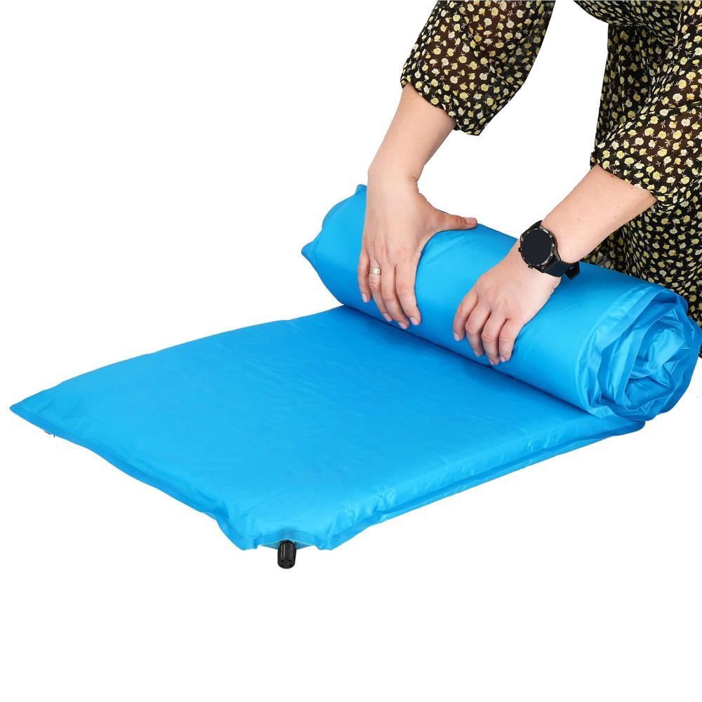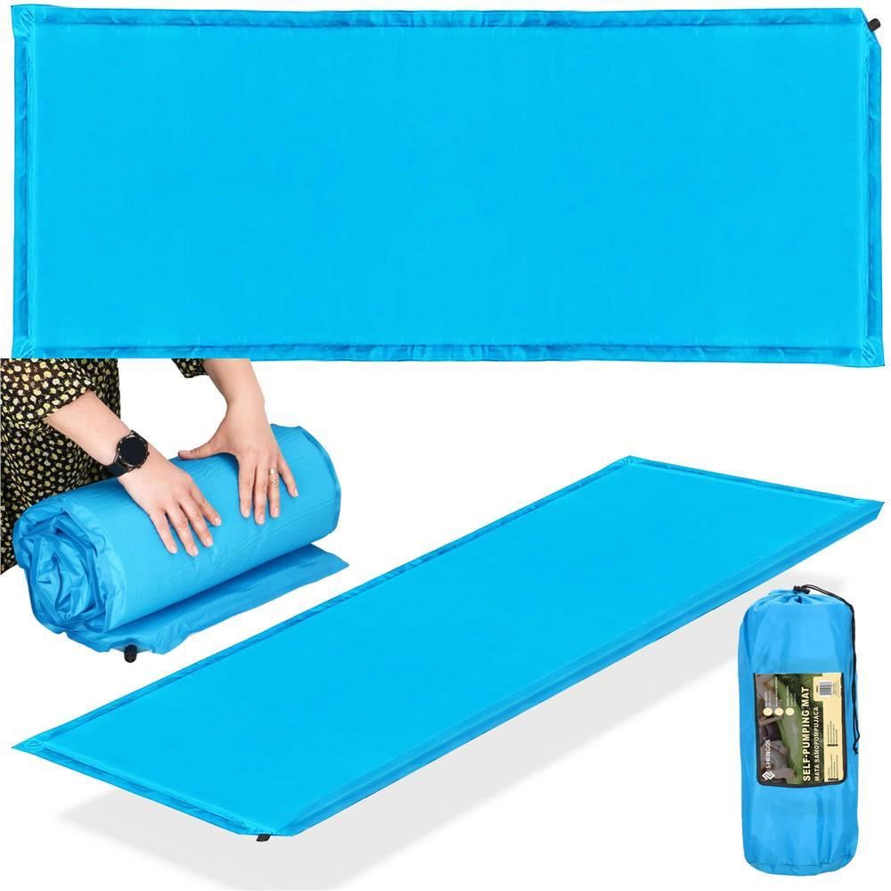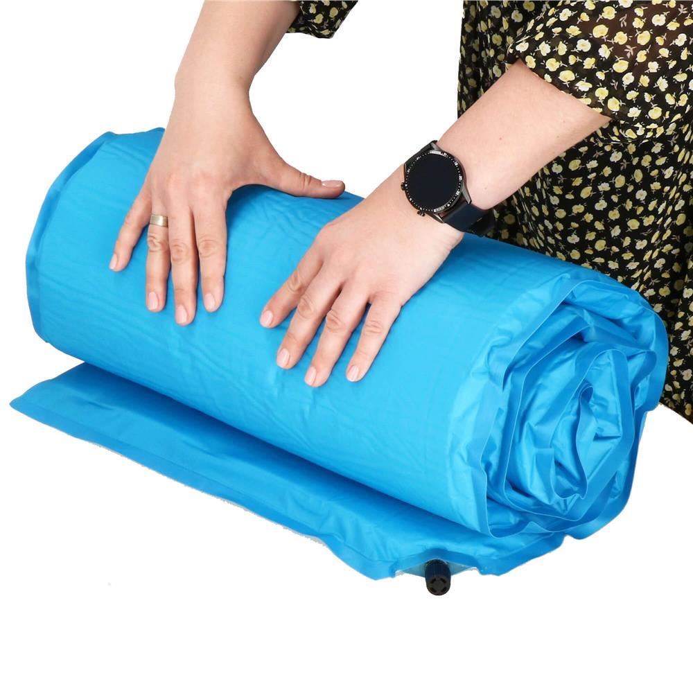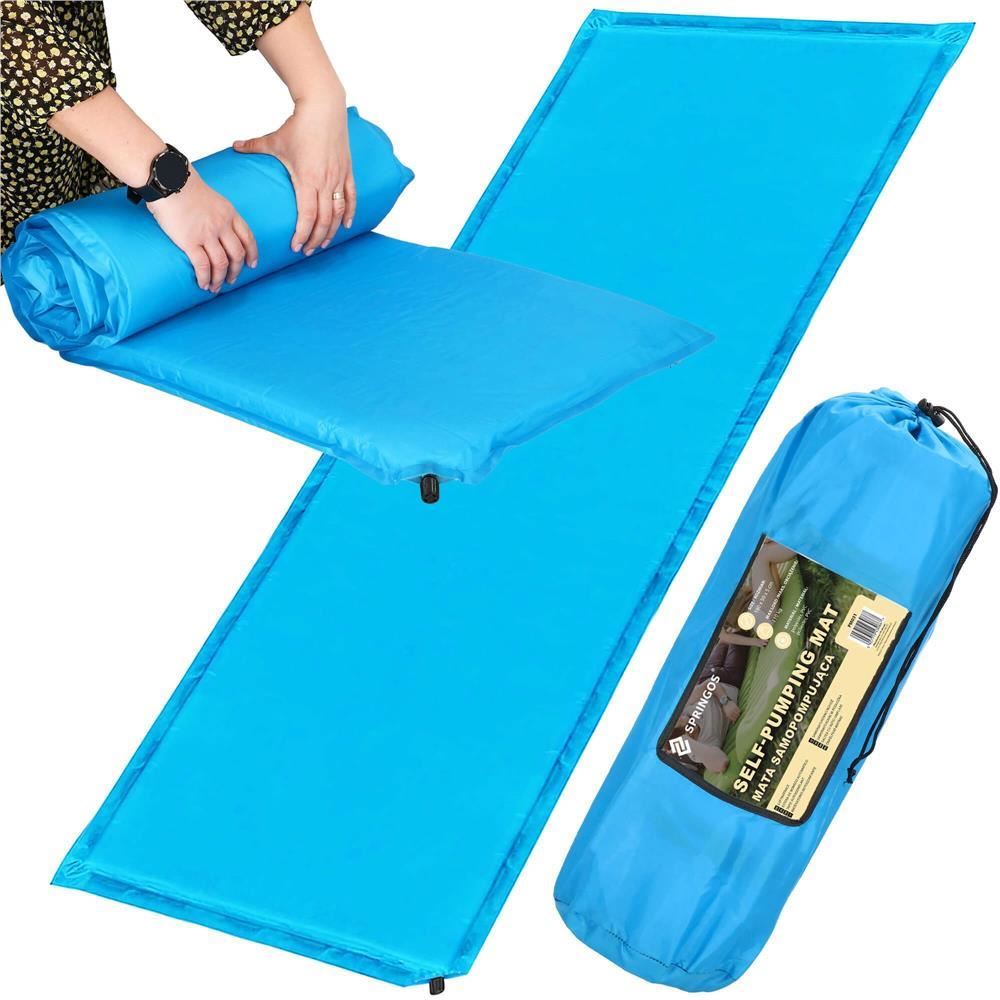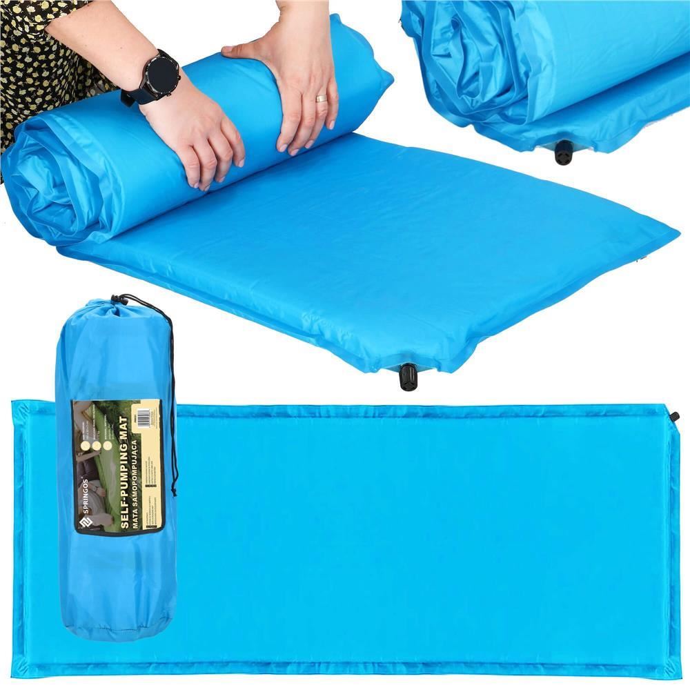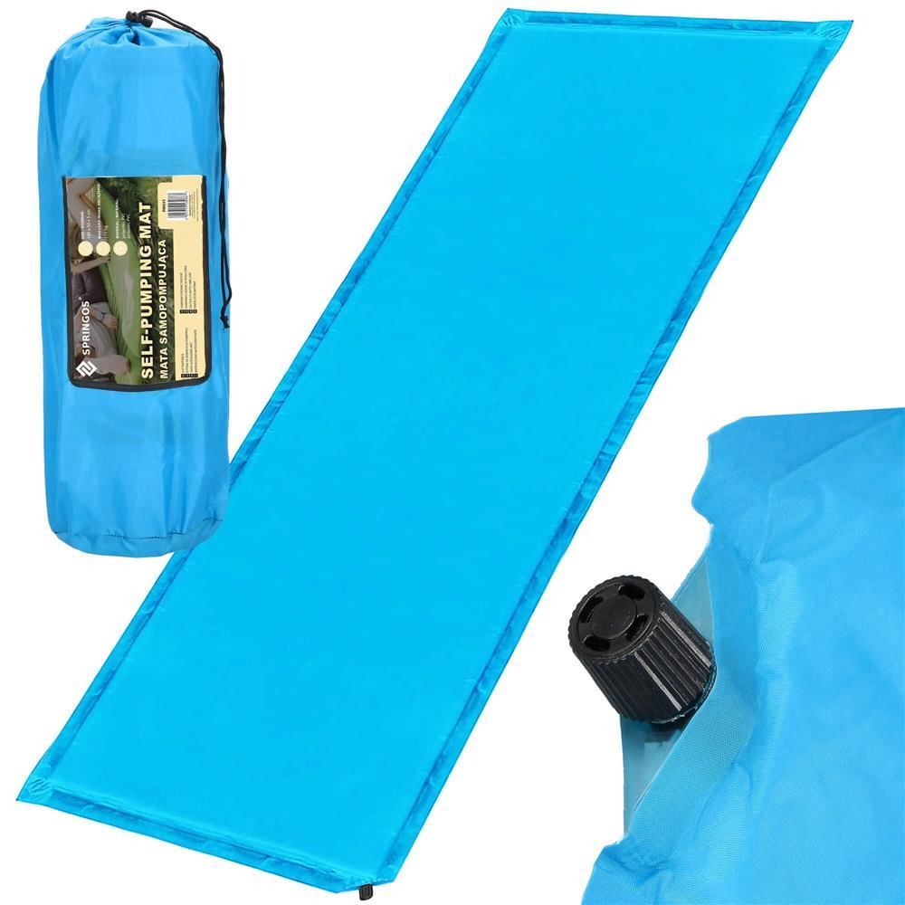 Önfelfújó kempingmatrac, poliészter és PU hab, kék, 180x50 cm, Springos