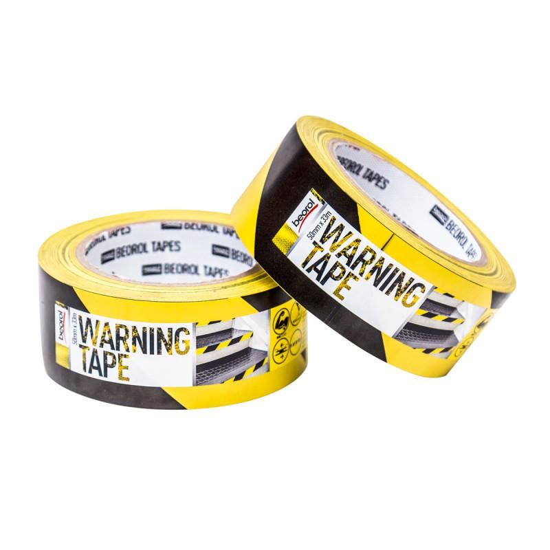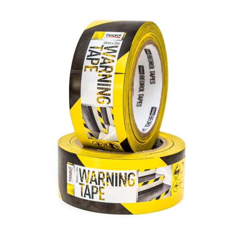 Öntapadó figyelmeztető szalag 50 mm x 33 m sárga-fekete, Beorol