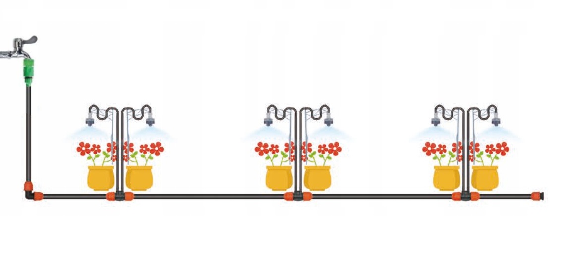 A rendszer kiválóan alkalmas otthoni növények öntözésére. A növényi öntözőrendszer használatának fő előnye az állandó és egyenletes permetezés.