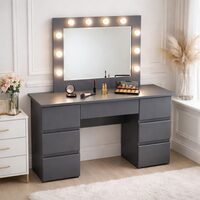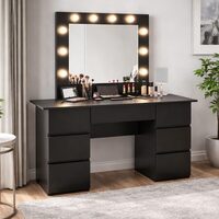Masa de toaleta/machiaj, Vanessa, alba + scaun Lago, negru, cu oglinda si LED-uri, 130x43x143 cm (146203)