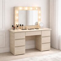 Masa de toaleta/machiaj, Vanessa, alba + scaun Mark, bej, cu oglinda si LED-uri, 130x43x143 cm (146180)