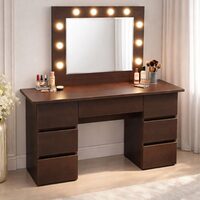 Masa de toaleta/machiaj, Vanessa + scaun Lago, alb, cu oglinda si LED-uri, 130x43x143 cm (146210)