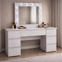 Masa de toaleta/machiaj, Vanessa + scaun Avola, alb, cu oglinda si LED-uri, 130x43x143 cm (146197)