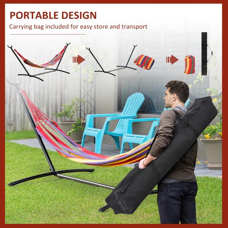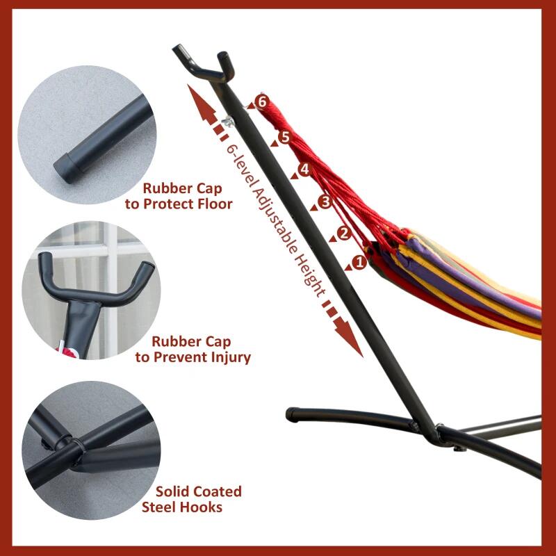 Pamut függőágy acél támasztékkal, huzattal, többszínű, csíkos, 200x150 cm