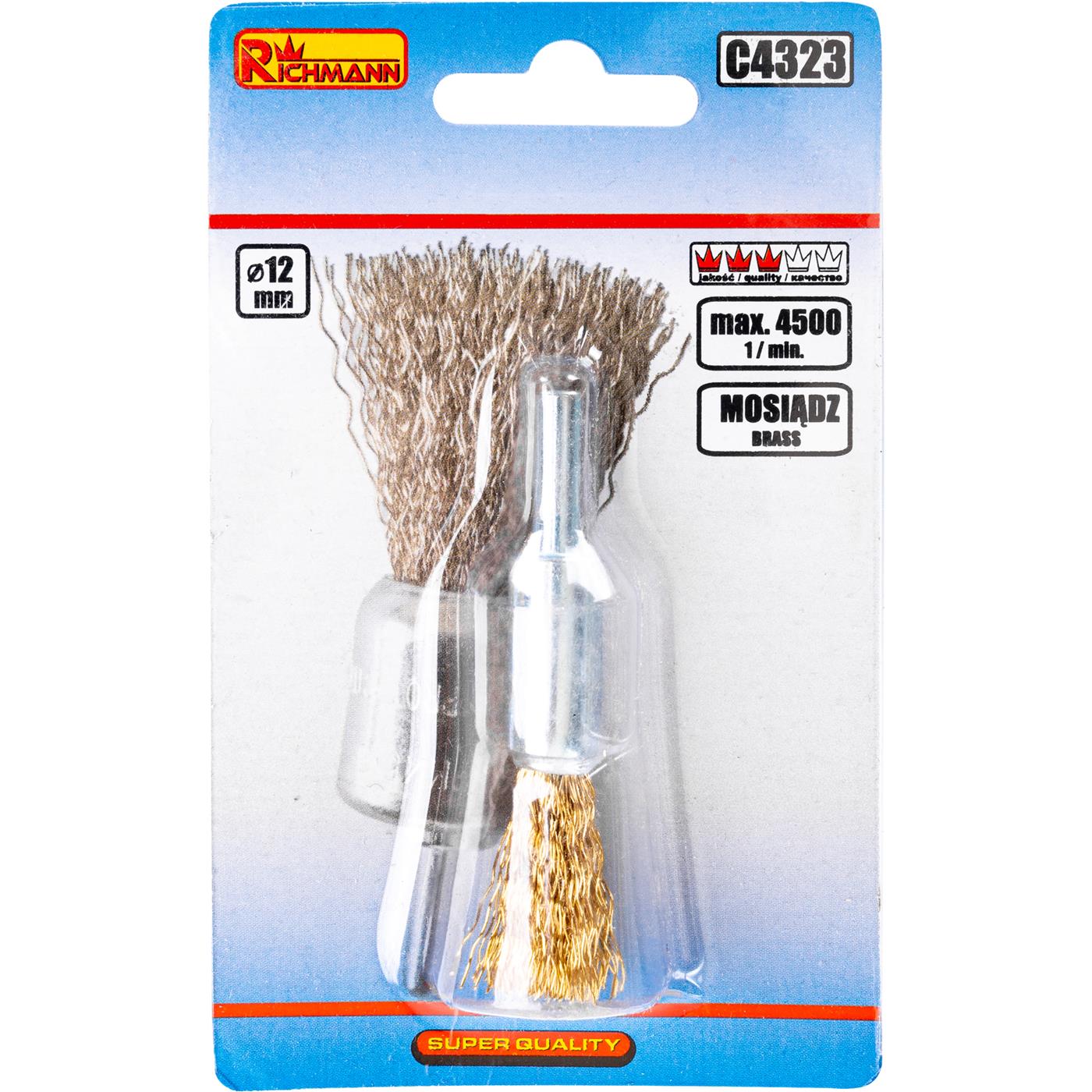 Sárgaréz drótkefe, csésze típusú, rúddal, 12 mm, Richmann