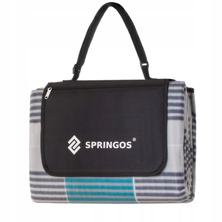 Piknik takaró, kockás mintás, kék, 200x240 cm, Springos
