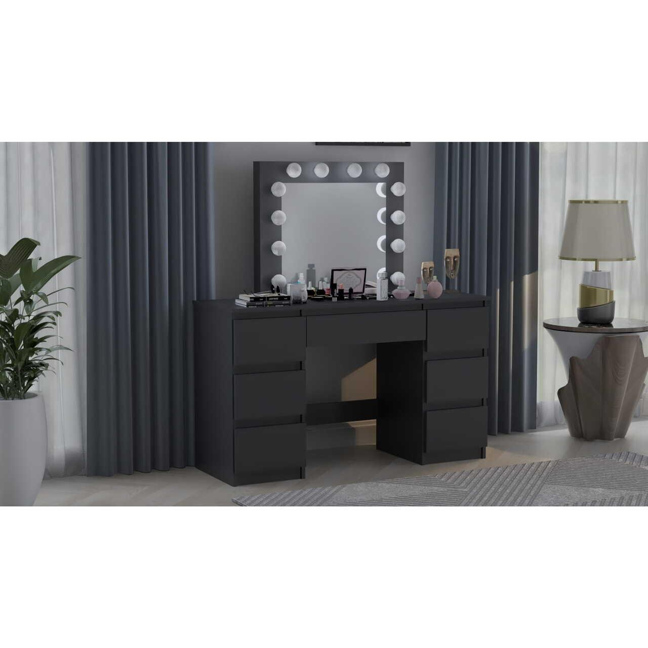Öltöző/sminkasztal + Korfu zsámoly, fekete, tükörrel és LED-ekkel, Vanessa, 130x43x143 cm A fésülködőasztal jellemzői: Rendkívül gondosan és...
