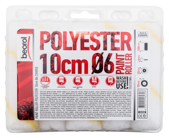 Poliakril henger, sárga huzal, 10 cm / 15 mm, 12 mm huzal, Beorol Ez a henger alkalmas féldiszperziós, diszperziós és homlokzati festékek felhordására. Jellemzők: Méretek...