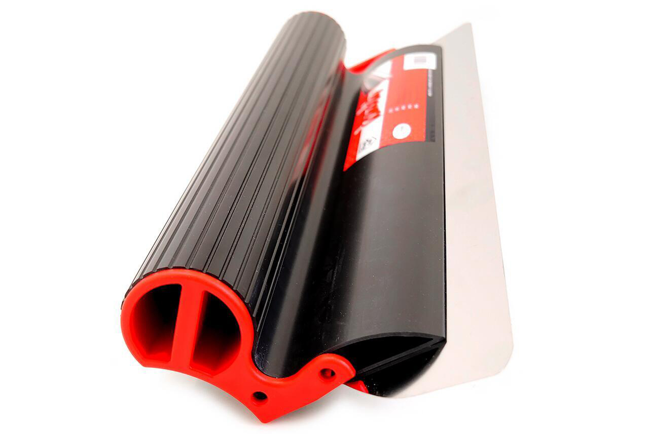 - A nagyon vékony, legjobb minőségű rozsdamentes acélból készült penge rugalmassága lehetővé teszi a töltő- és befejező anyagok kiegyenlítését, így az anyag nagyon vékony rétegben is felvihető. Tökéletesen kisimítja az alapozásra és festésre gyakorlatilag kész felületet, pontosságot és a legfinomabb felületet kínál, gyakorlatilag kiküszöbölve a csiszolást. A penge rugalmas szerkezete révén a munkafelületen és a pengén tartja az anyagot, így minimálisra csökkenti az anyagpazarlást és a tisztítás szükségességét.