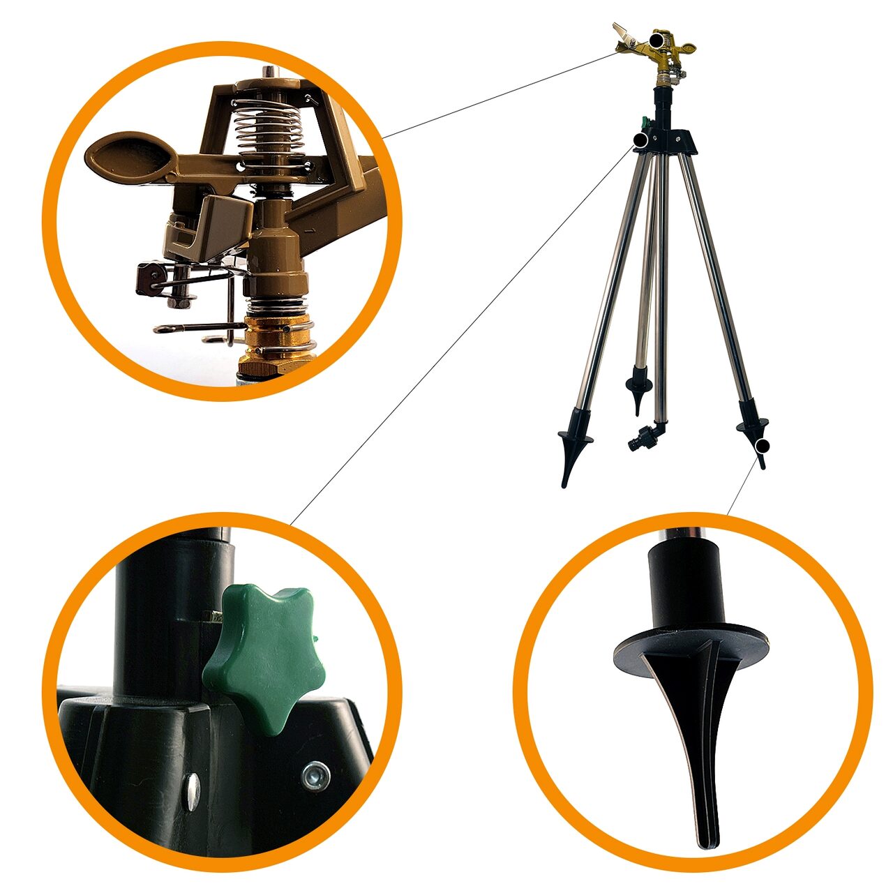 STREND PRO sprinkler, Pulzáló, horganyzott, teleszkópos állvánnyal, 550-905 mm
