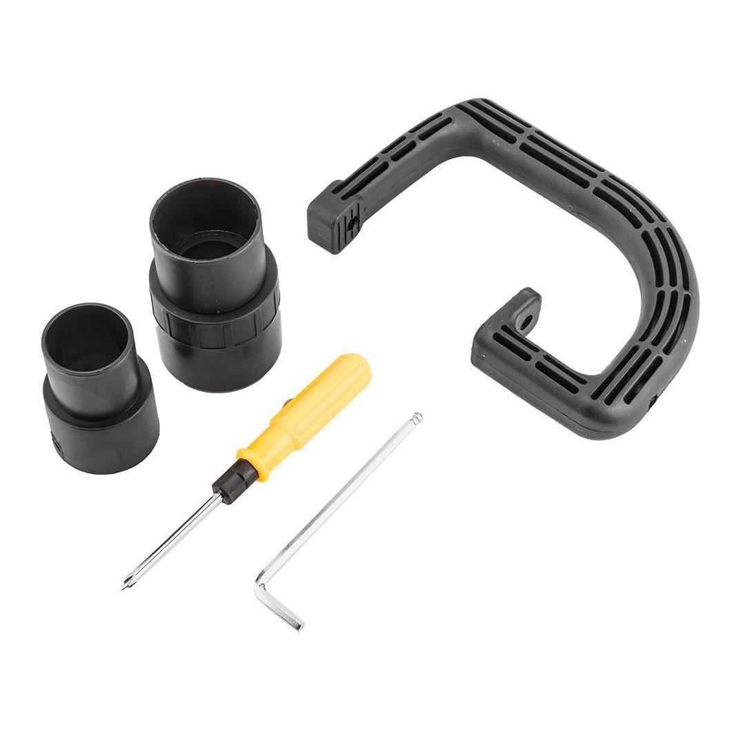 A darálós készlet tartalma: papír / csiszolószalag, szívótömlő, kihúzható kar, szűkítők, csavarhúzó, kulcs, vállpánt, textiltáska tároláshoz és szállításhoz.