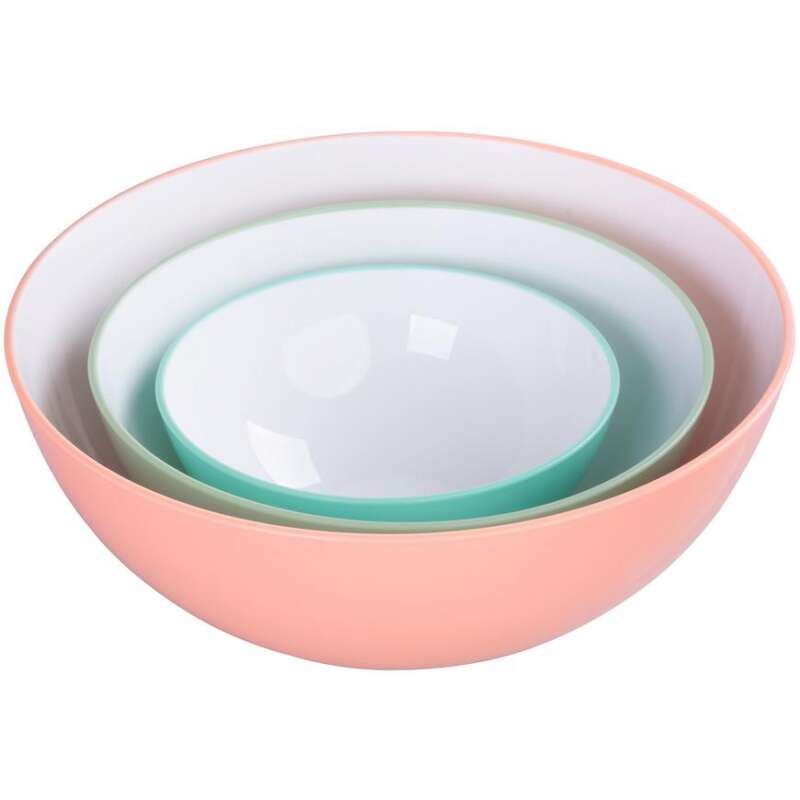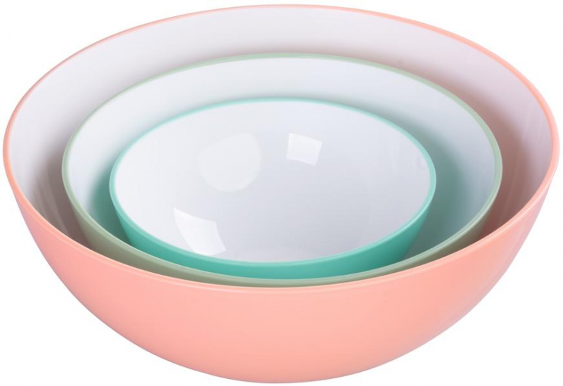 A készlet 3 különböző térfogatú (0,6, 1,5 és 3 literes) tálat tartalmaz, finom, ízléses árnyalatokkal színezve. Mikrohullámú sütőben is használhatók, és mosogatógépben is tisztíthatók.