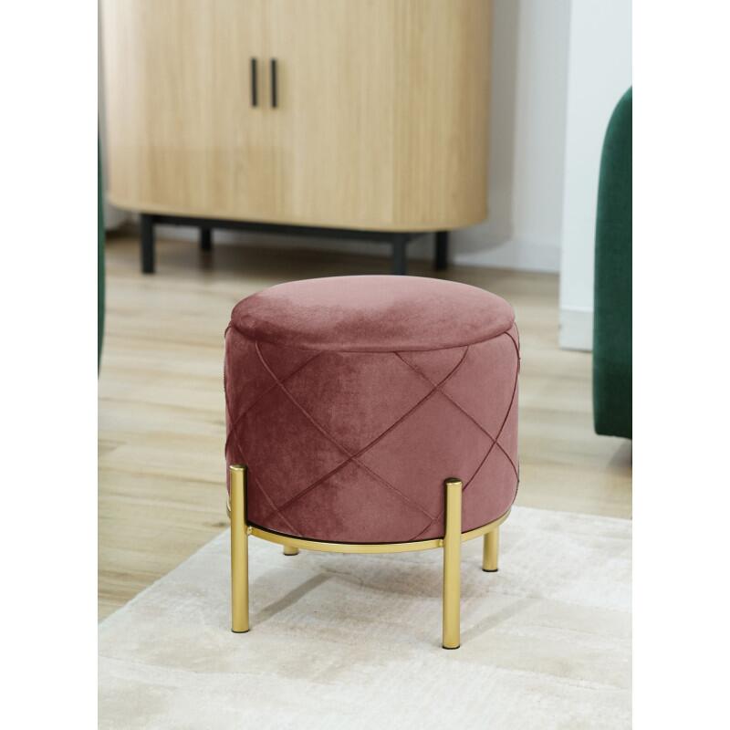 Sámli, kerek, tárolóhellyel, fém lábakkal, bársony, rózsaszín, max 80 kg, 37x40 cm, Savana, Akord