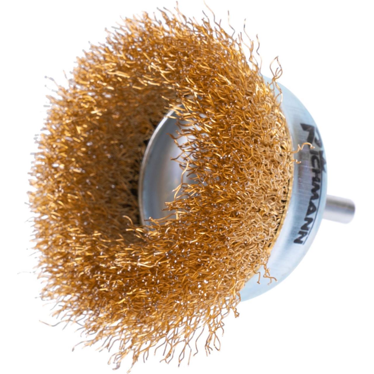 Sárgaréz drótkefe, csésze típusú, rúddal, 75 mm, Richmann