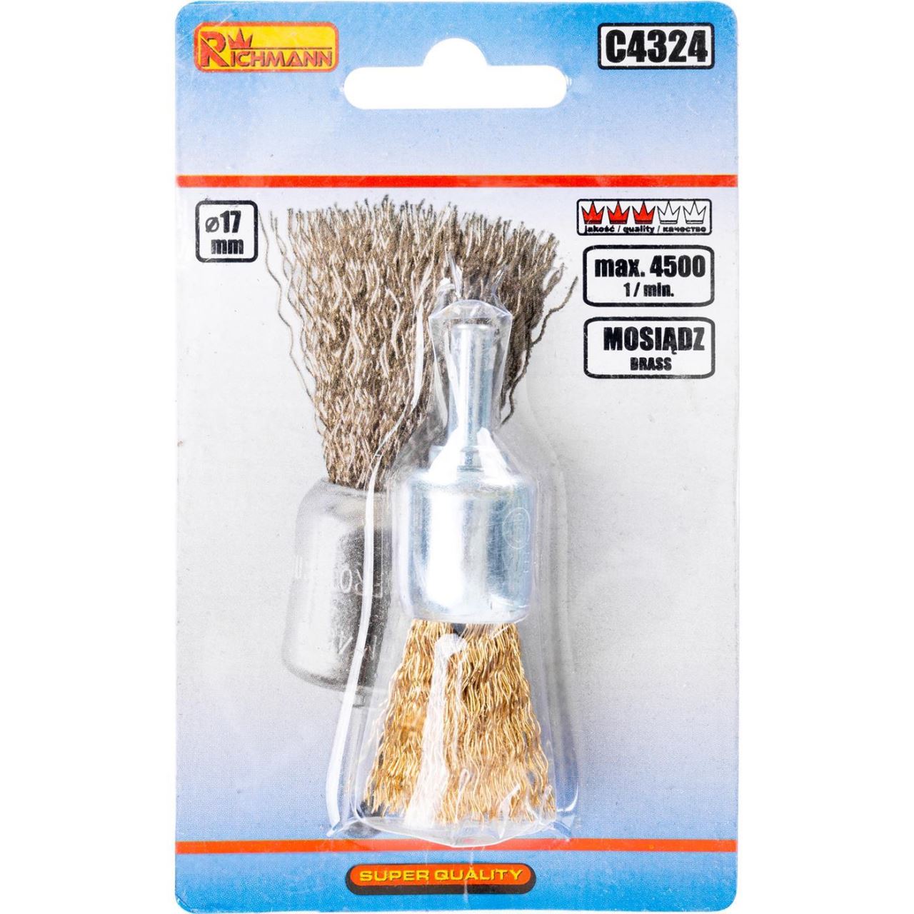 Sárgaréz drótkefe, kör alakú, rúddal, 17 mm, Richmann