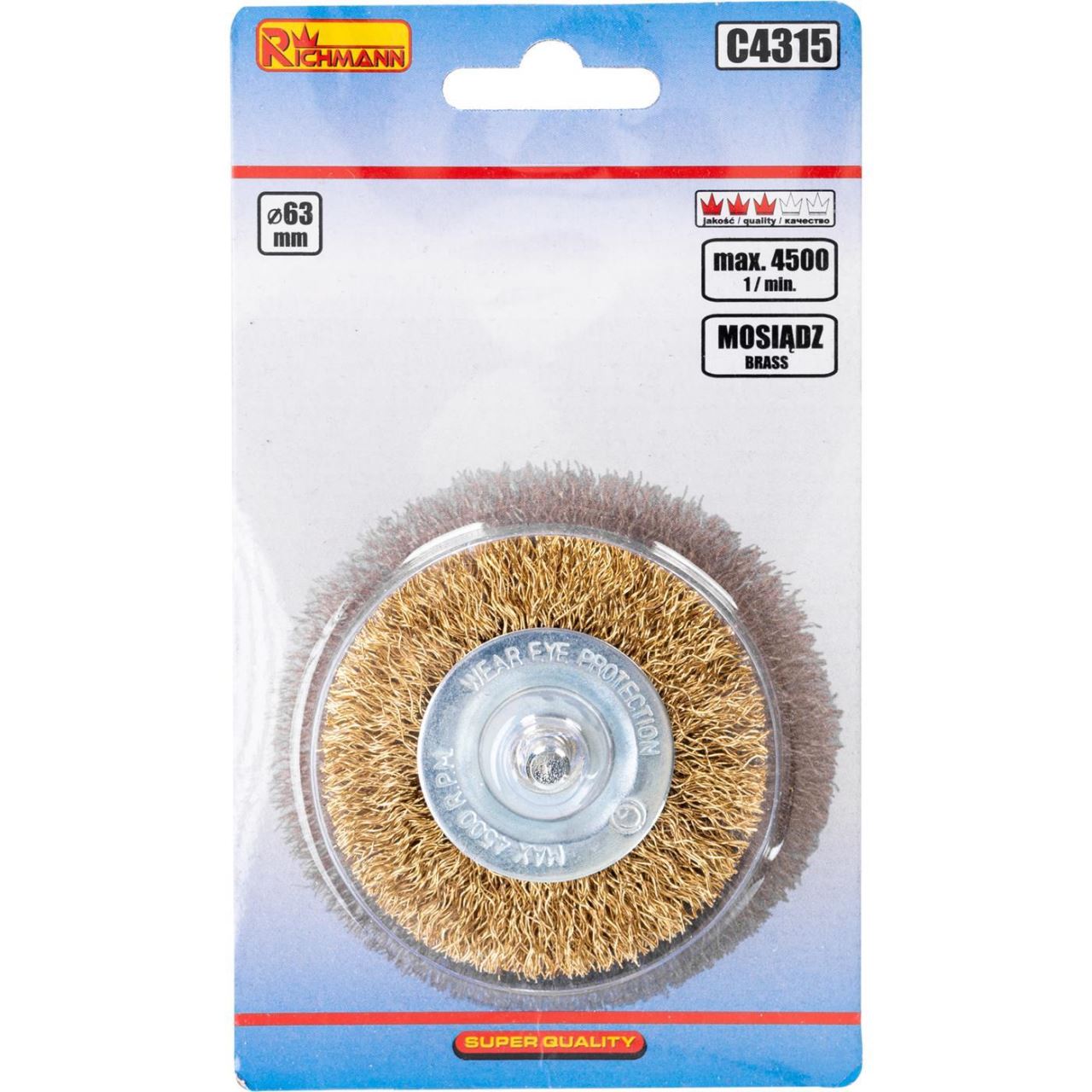 Sárgaréz drótkefe, kör alakú, rúddal, 63 mm, Richmann