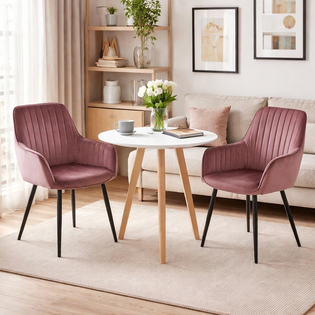 Scaun bucatarie/living, Artool, Solden, catifea, metal, roz si negru, 55x45.5x83.5 cm (3907_1)