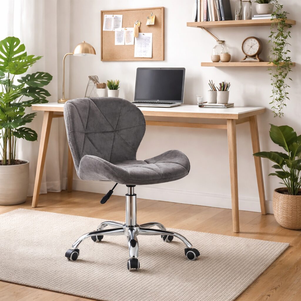 Scaun de birou, Mufart, Avola, rotativ, catifea, gri, 46.5x55x86.5 cm(3667)