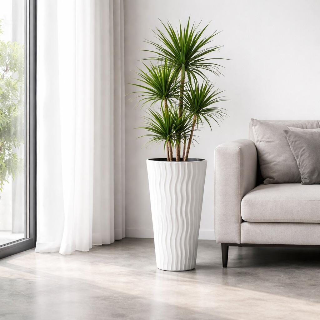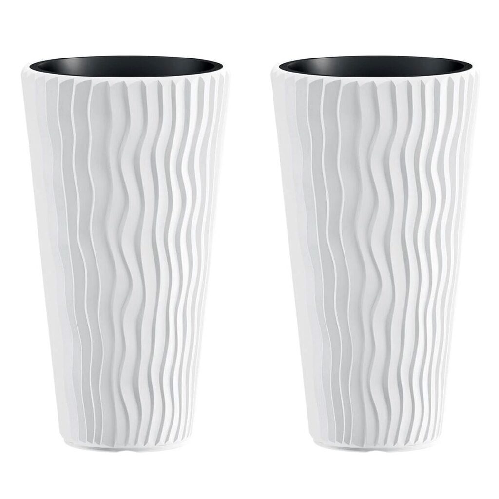 Set 2 ghivece de flori Sandy Slim 350 rotund, alb, 34.9x62 cm (DPSP350-S449-S2)