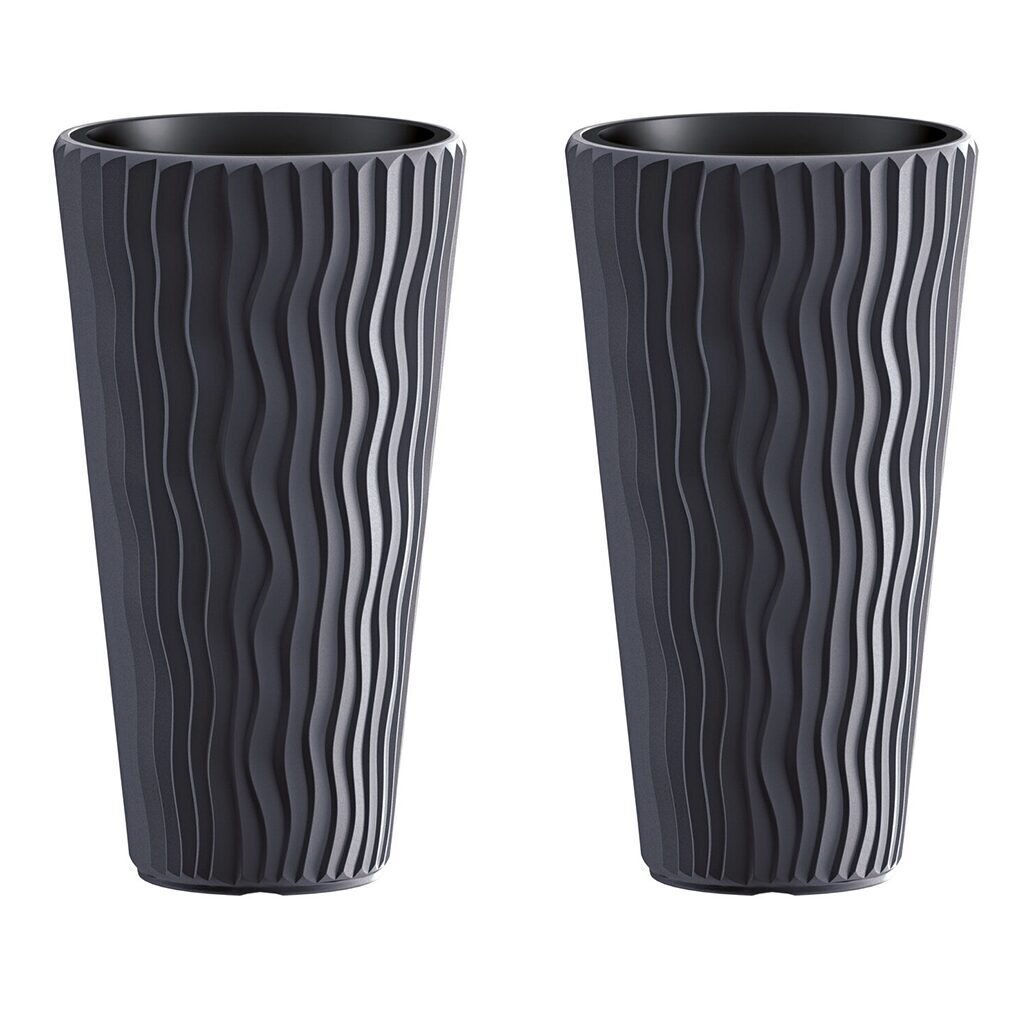Set 2 ghivece de flori Sandy Slim 350 rotund, antracit, 34.9x62 cm (DPSP350-S433-S2)