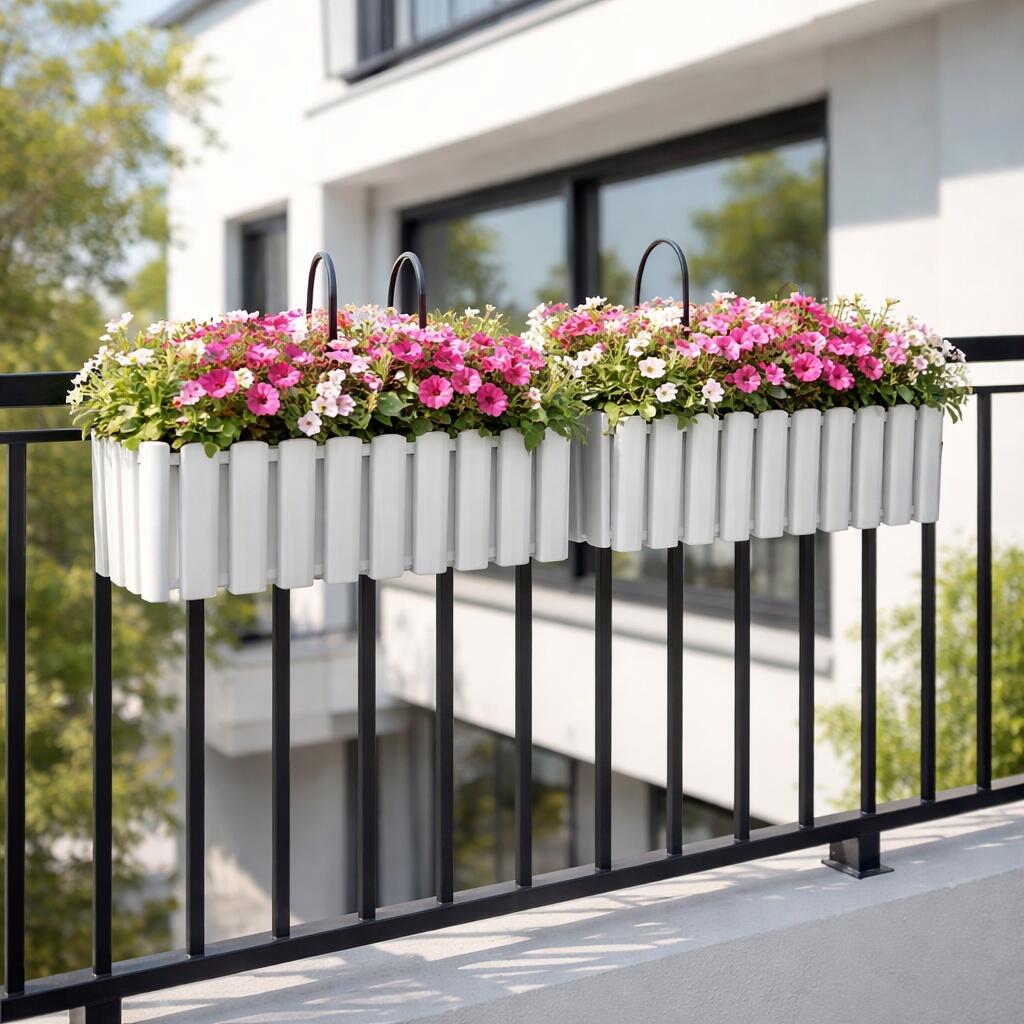 Set 2 jardiniere decorative cu suport metalic, alb, 58x18x16.2 cm, Boardee Fencycase W (DDEF600W-S449-S2)