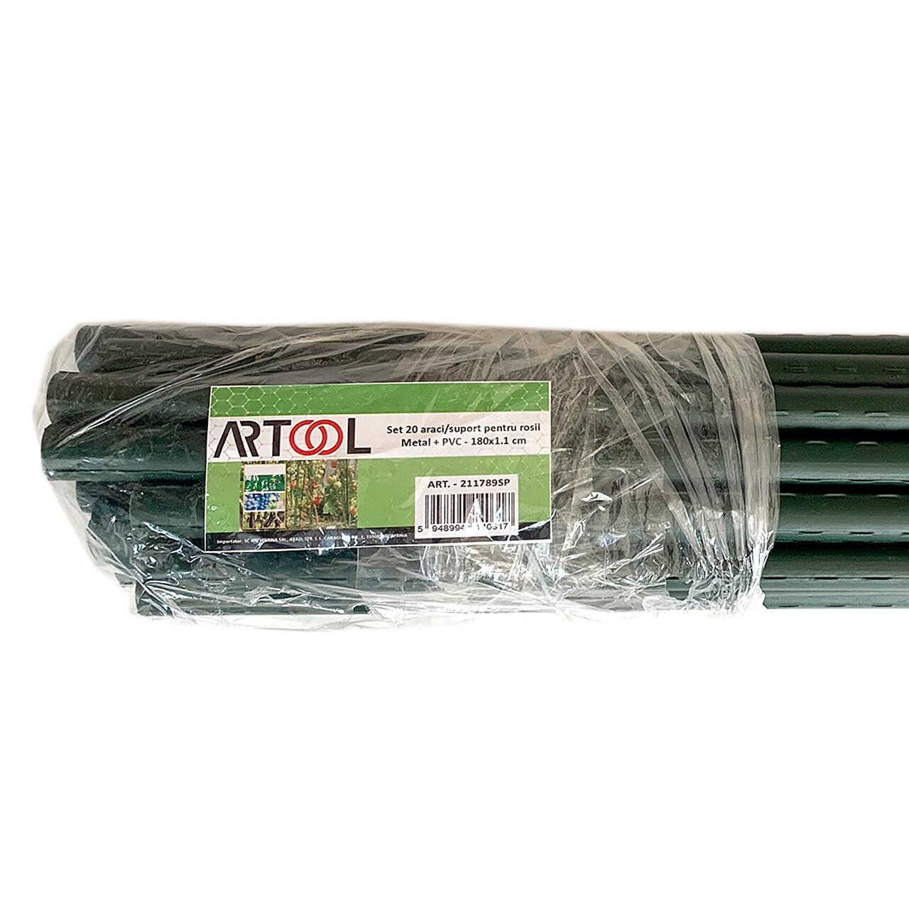 Set 20 suporti/araci pentru plante, rosii, metal + PVC, verde, 1.1x180 cm (211789SP)