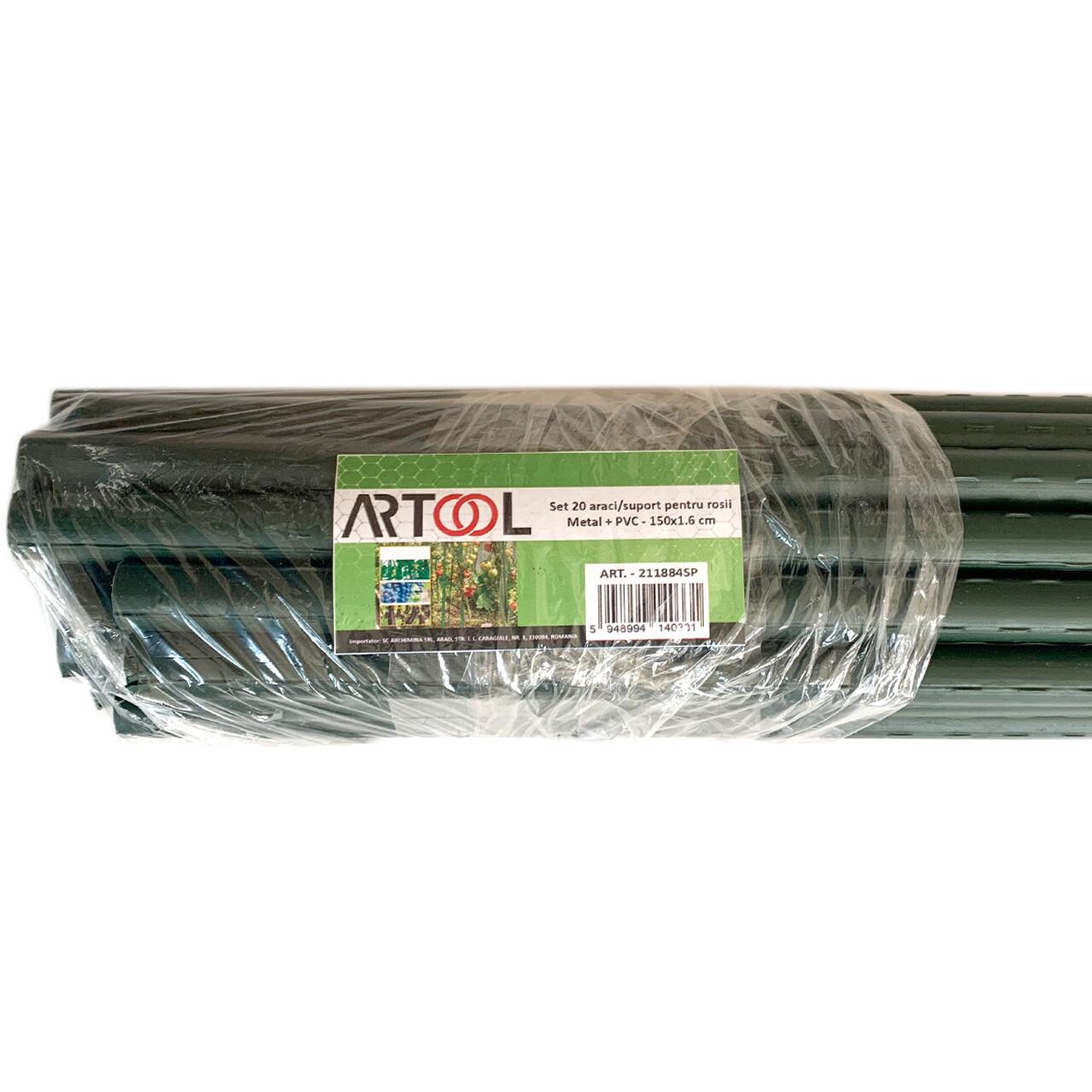Set 20 suporti/araci pentru plante, rosii, metal + PVC, verde, 1.6x150 cm (211884SP)