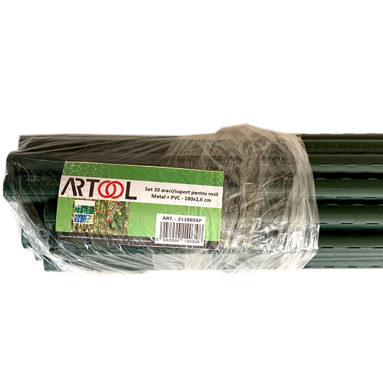 Set 20 suporti/araci pentru plante, rosii, metal + PVC, verde, 1.6x180 cm (211885SP)