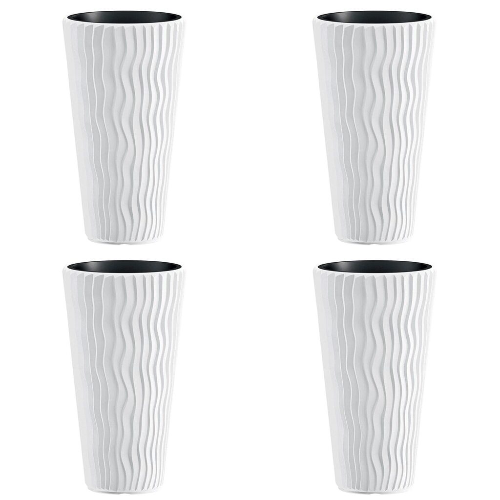 Set 4 ghivece de flori Sandy Slim 350 rotund, alb, 34.9x62 cm (DPSP350-S449-S4)