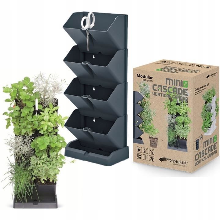 4 db dekoratív virágcserep készlet, moduláris, antracit, 4x1 L, 19,5x11,4x47,5 cm, Mini Cascade