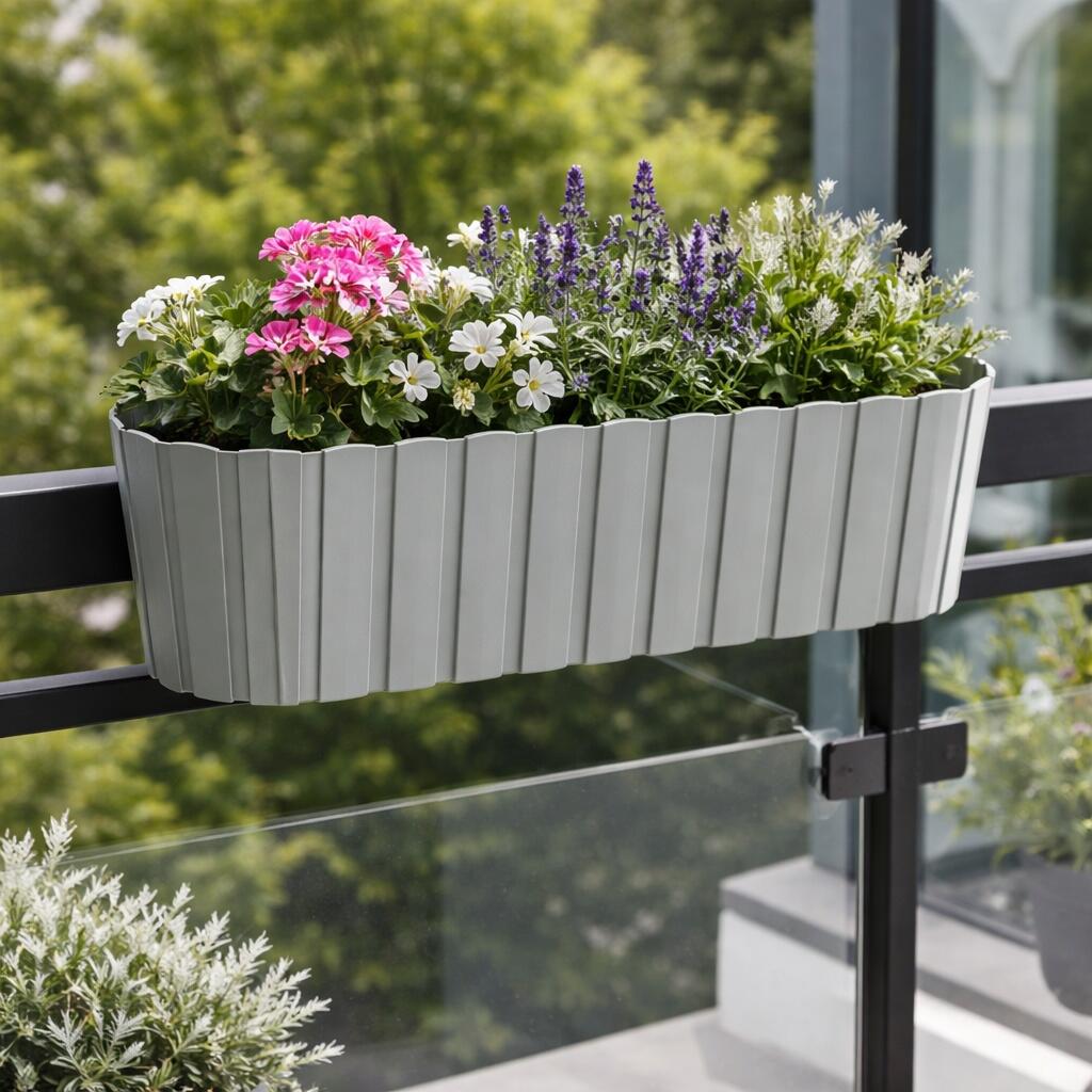 Set 4 jardiniere decorative, suport plastic, Boardee Hook, 4.9 L, 38.3x21.2x13 cm, gri (DDECZ400-405U-S4)
