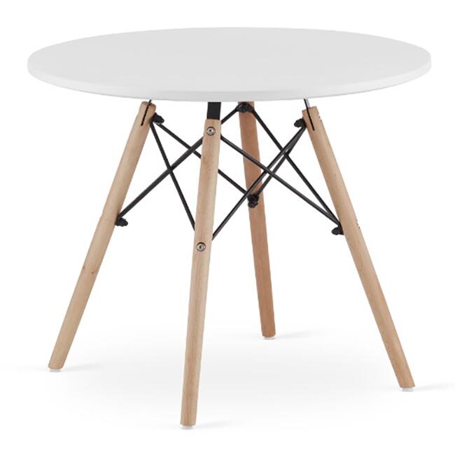 Skandináv stílusú asztal, Artool, kerek, MDF és fa, fehér, 60x50 cm