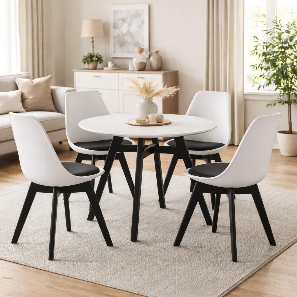 Skandináv stílusú szék, Artool, Mark, PP, fa, fekete-fehér, fekete párna, 49x43x82 cm