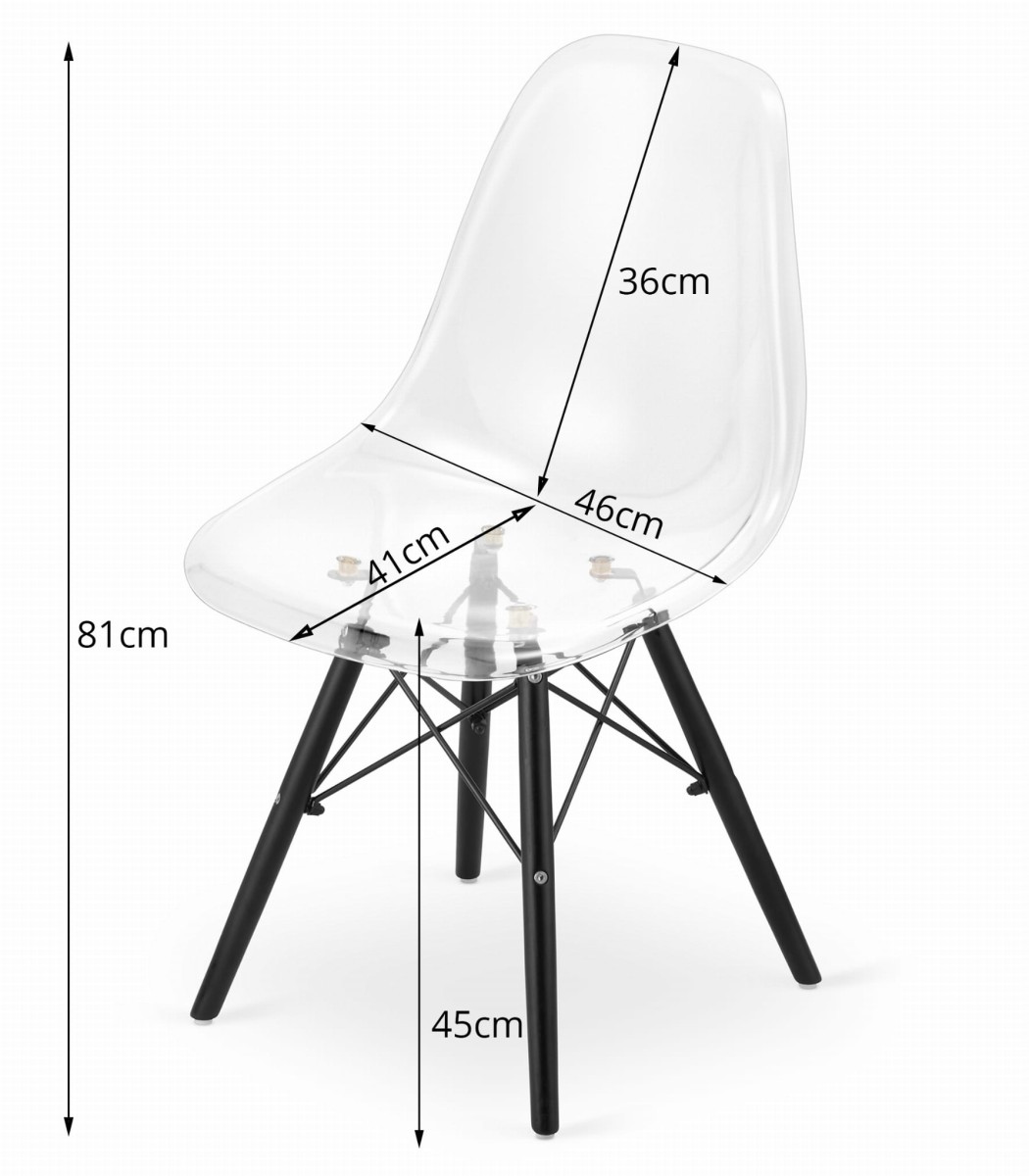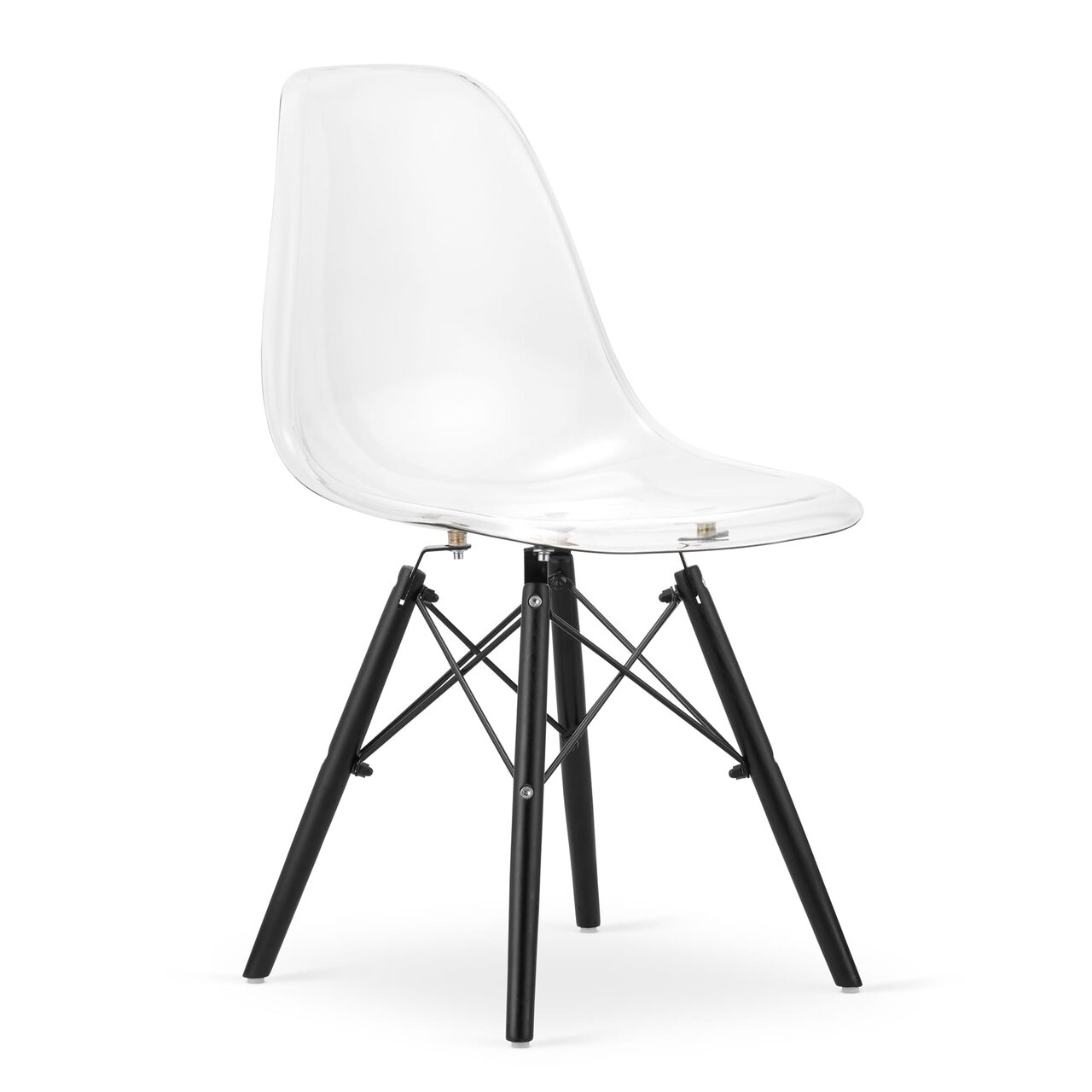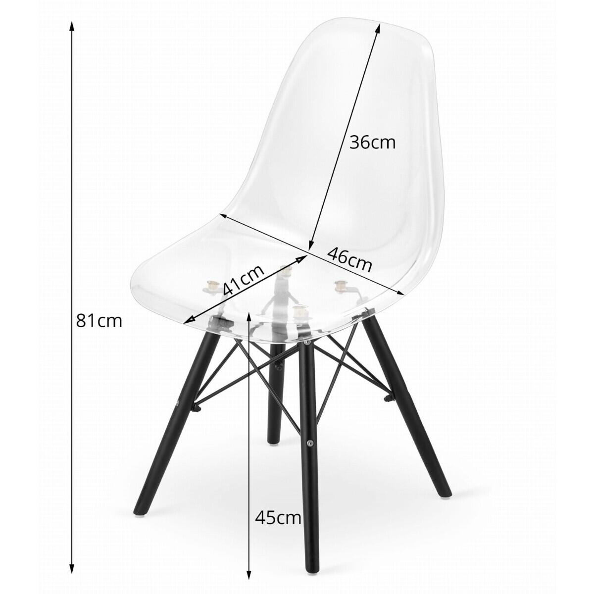 Skandináv stílusú szék, Artool, Osaka, polikarbonát, fa, átlátszó és fekete, 46x51,5x81 cm