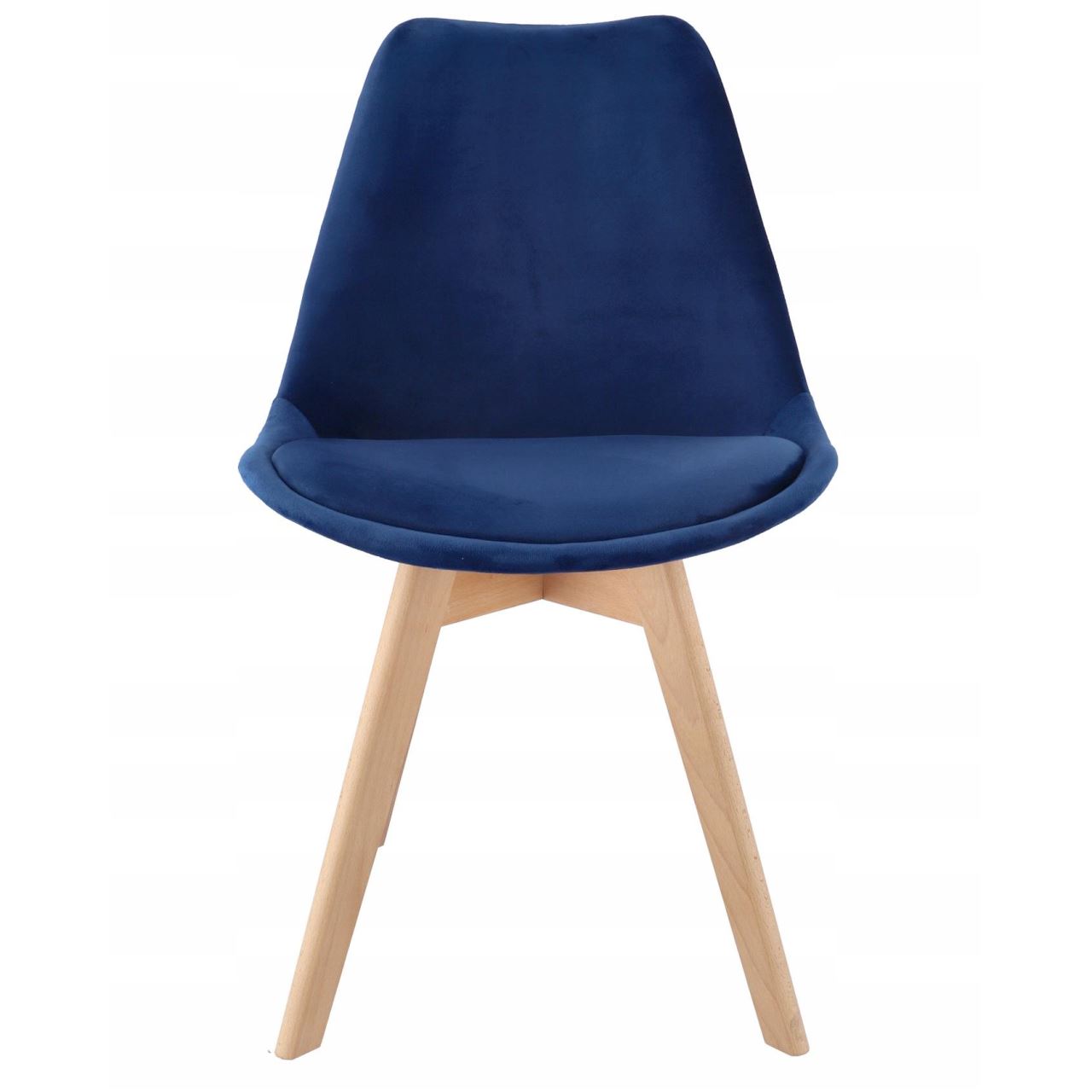 Skandináv stílusú szék, fa, velúr, kék, 49x60x82 cm, Bari
