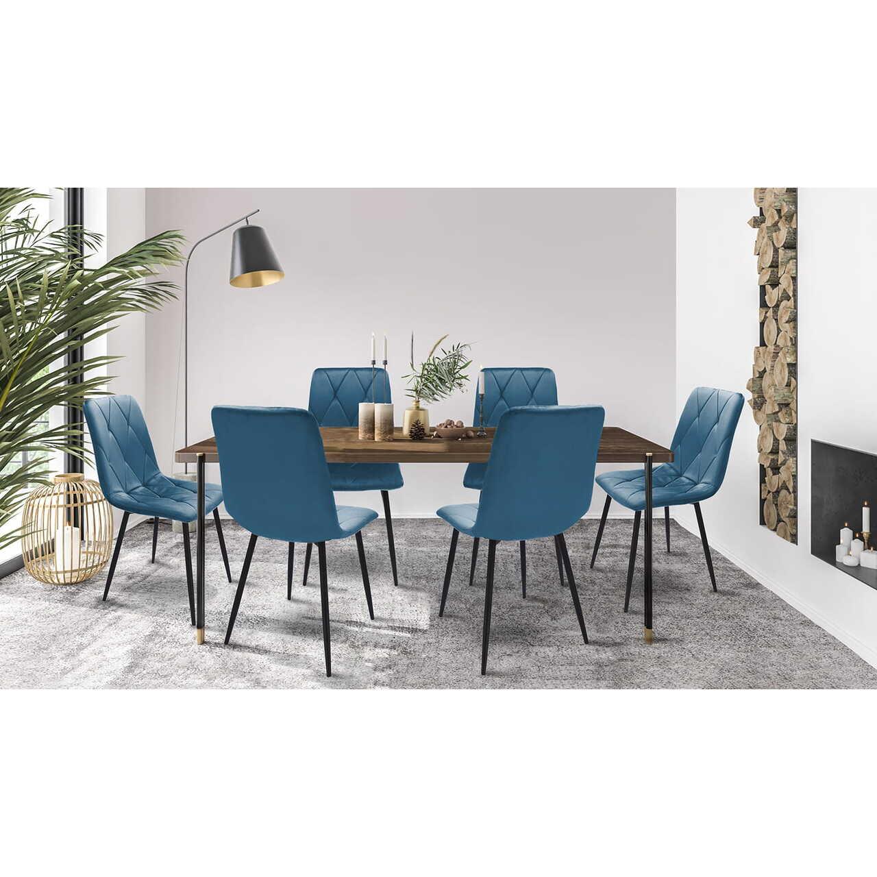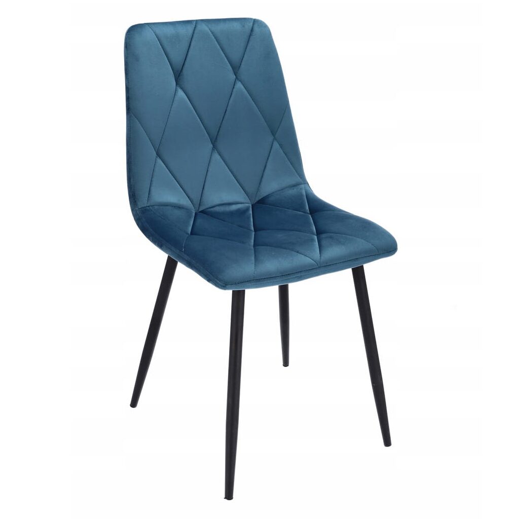 Skandináv stílusú szék, Jumi, Piado, bársony, fém, kék és fekete, 44x52x89 cm