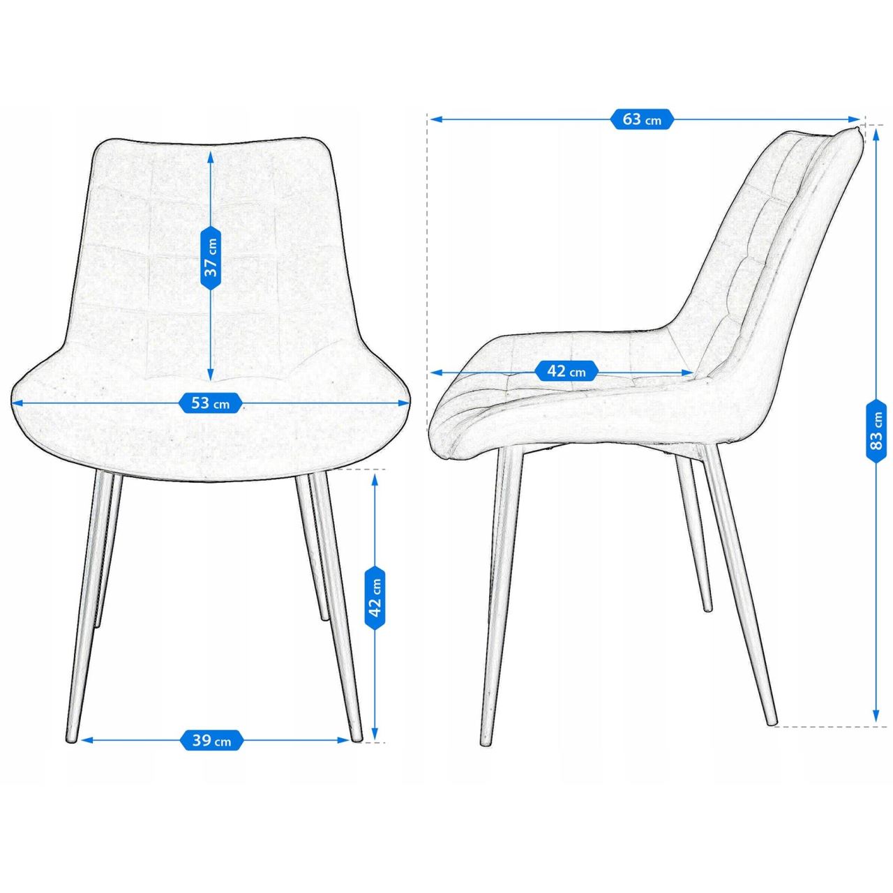 Skandináv stílusú szék, metál, velúr, kék, 53x63x83 cm, Ködös