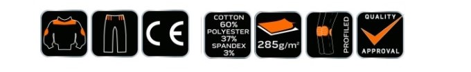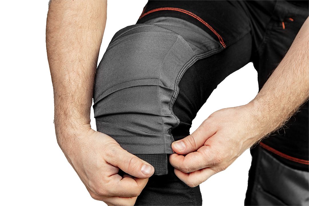 A térd és a könyök anyaga profilozott, a térdén zseb található.