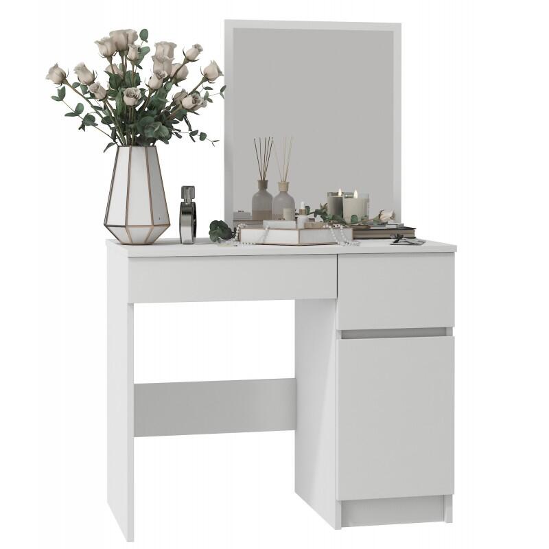 Öltöző/sminkasztal, 2 fiók, jobb, tükörrel, szekrény, fehér, 90x50x77/142 cm Jellemzők: Ideális bútor a nők számára, és nem csak! Ennek a tükrös fésülködőasztalnak a segítségével minden alkalommal gyo...