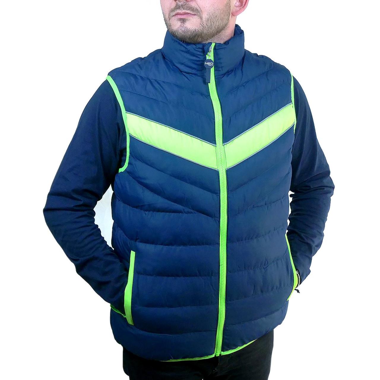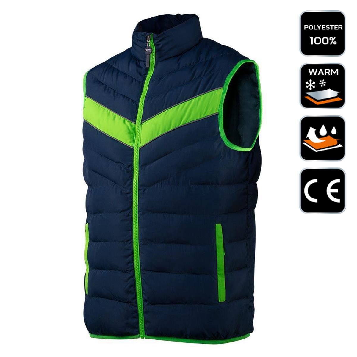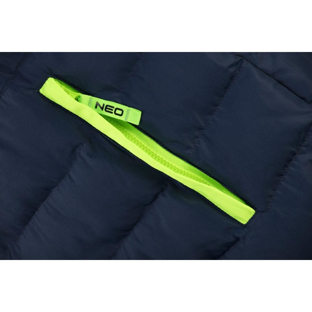 A NEO steppelt PREMIUM munkakabátja az   modern kombinációját tartalmazza; sötétkék zöld ékezetekkel.