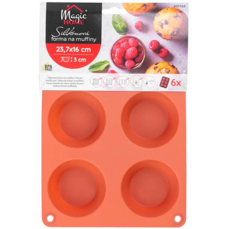 Sütőforma muffinokhoz, 6 forma, szilikon, piros, 23,7x16x3 cm, MagicHome