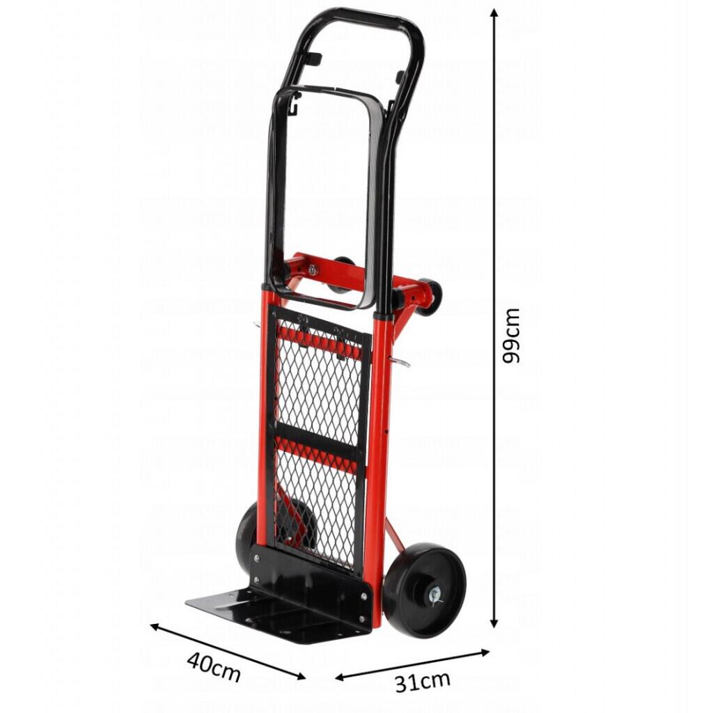 - Igénytől függően vízszintes helyzetben (mind a 4 kerékkel) és függőleges helyzetben (csak két kerékkel) egyaránt használható. Függőleges helyzetben ez a babakocsi akár 60 kg-ot, vízszintes helyzetben pedig maximum 80 kg-ot képes szállítani.