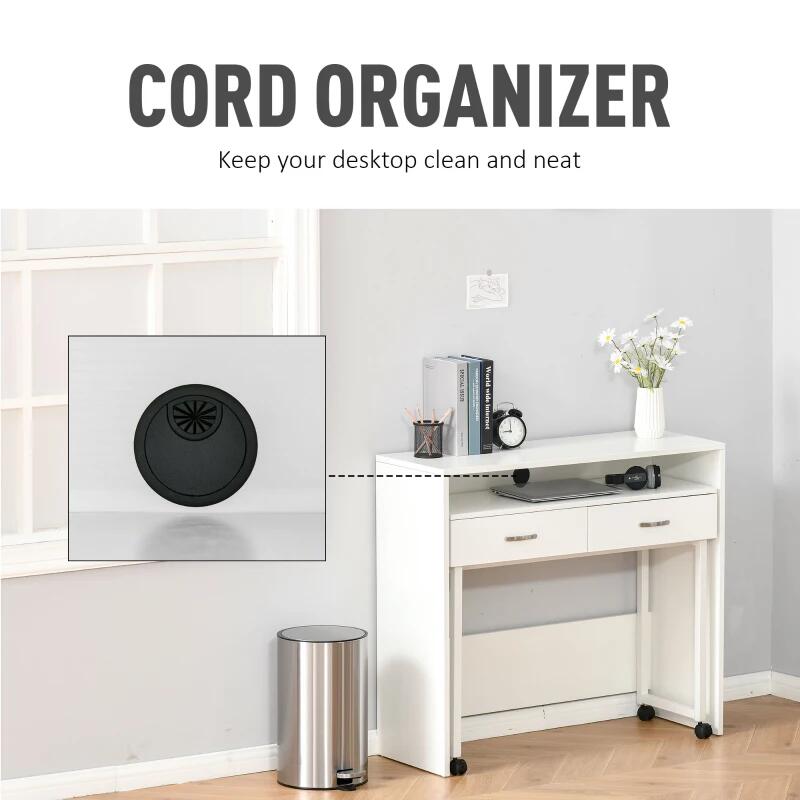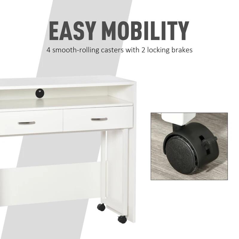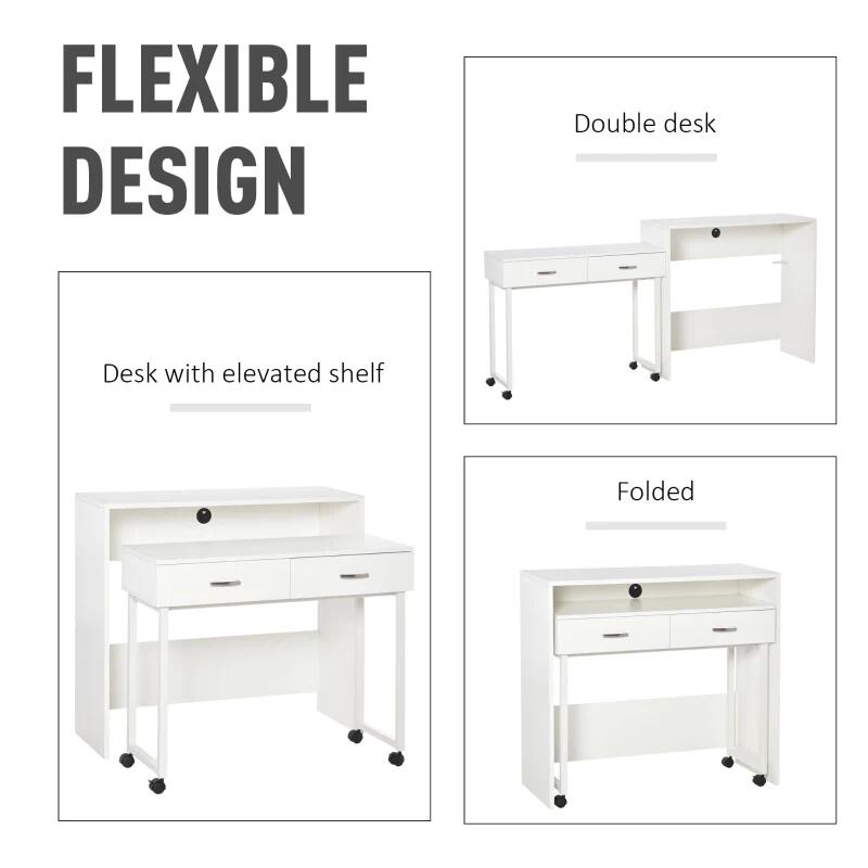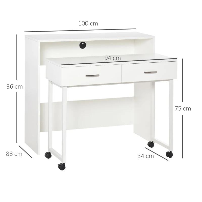 Számítógép asztal, átalakítható, MDF és fém, 2 fiókkal, fehér, max 45 kg, 100x36x88 cm